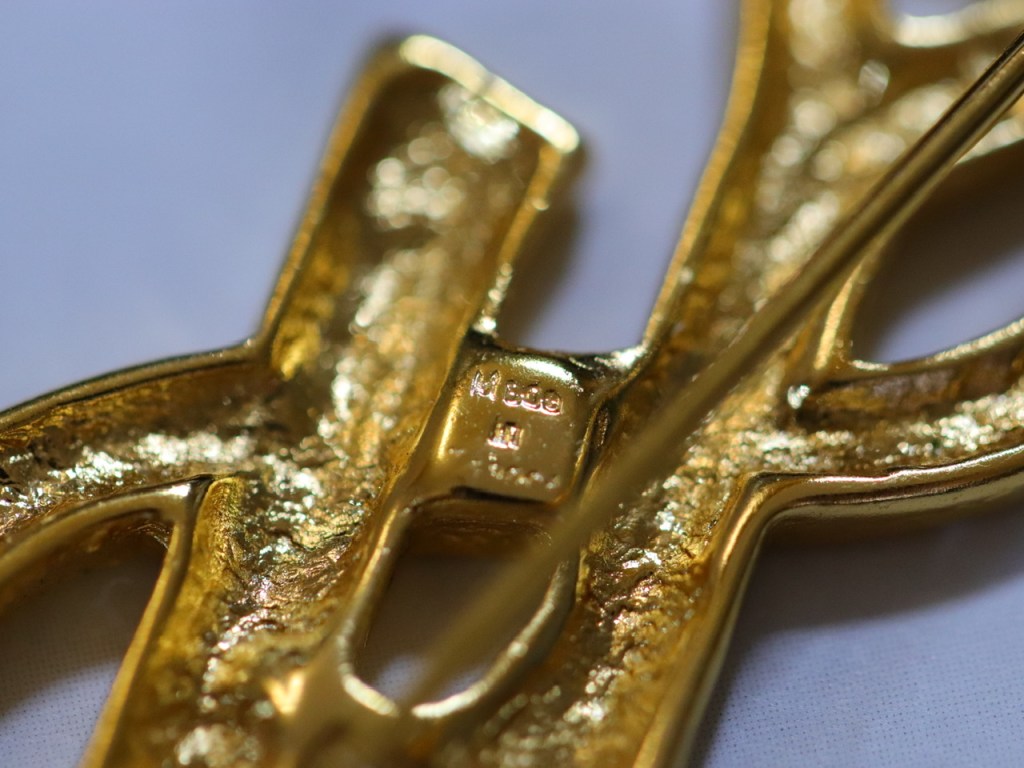 • ②.极具设计感与复古气质的纪梵希80s耳针式大耳环;Givenchy以其简洁而富表现力的线条闻名,这类耳环不仅体现了80年代复古奢华风格,也展示了那个年代对大件饰品、几何造型与结构感的偏爱。6.9×2.3cm,背面签名;仿锤击纹理镀金合金;英国