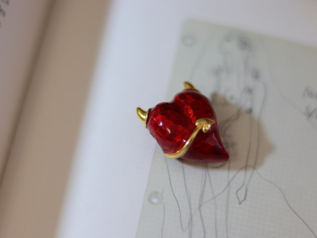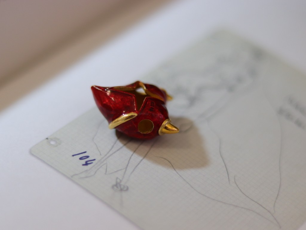 ①.小恶魔·魔女·黄金角尾巴·纯银饰珐琅项坠;1960S,925纯银/黄金/珐琅彩,29X20MM,成色如图:似未使用过;空心,背后开口设计;可穿直径5毫米以内的链子;不含链