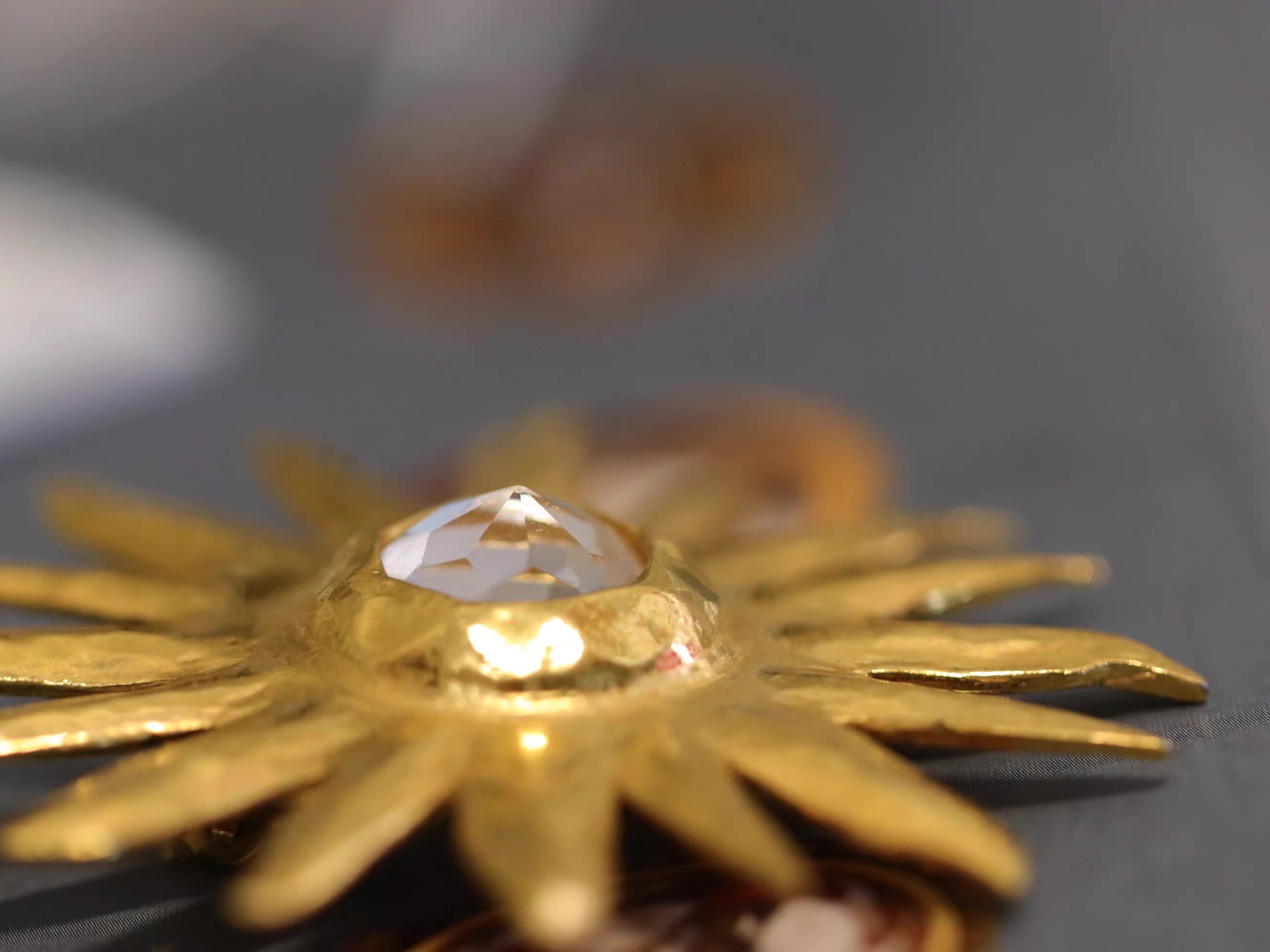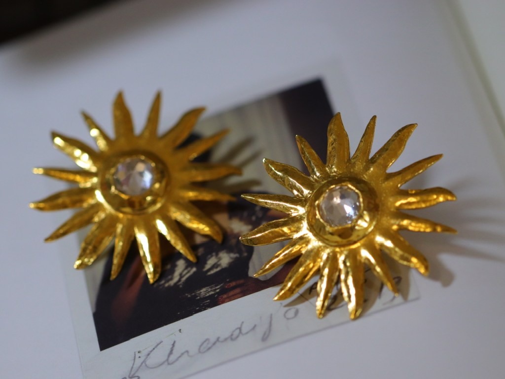 闪耀星辰星芒星耀·辐射光·收藏级左岸圣罗兰YSL大耳环;1980S,镀金/莱茵石,6.02厘米,成色如图:佳-其中一只莱茵石尖顶微磕,肉眼不明显(20190213)