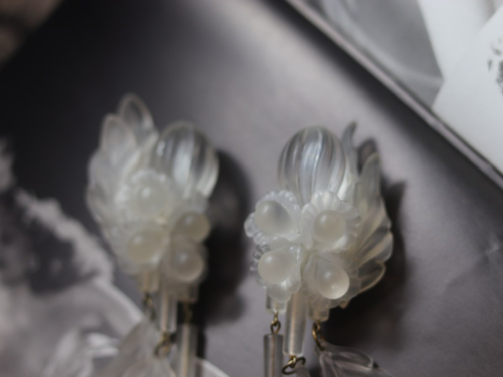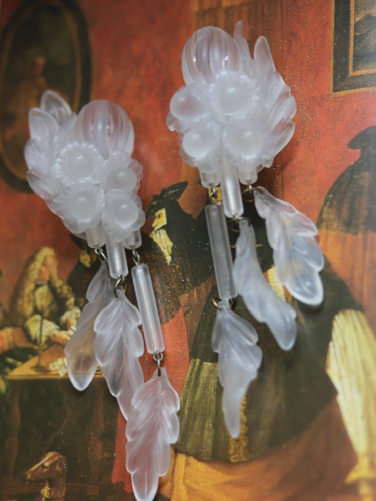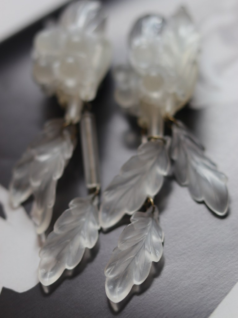 ①③.「如果你按照别人的想法生活,你永远不会富有。」璐彩特树脂花枝叶子·精灵系大耳环;1990S,近乎全新;水晶灯式走秀款;自然主义(20190123)
