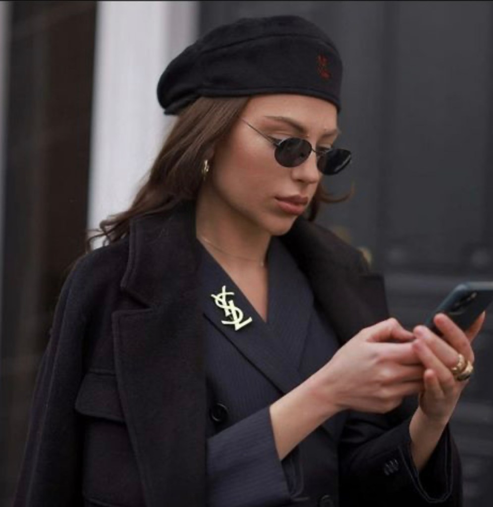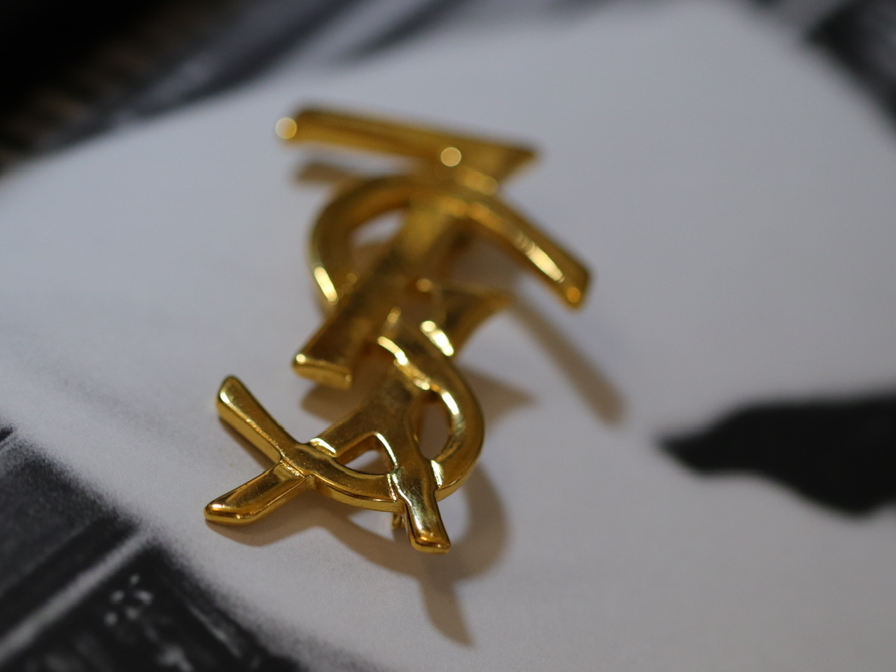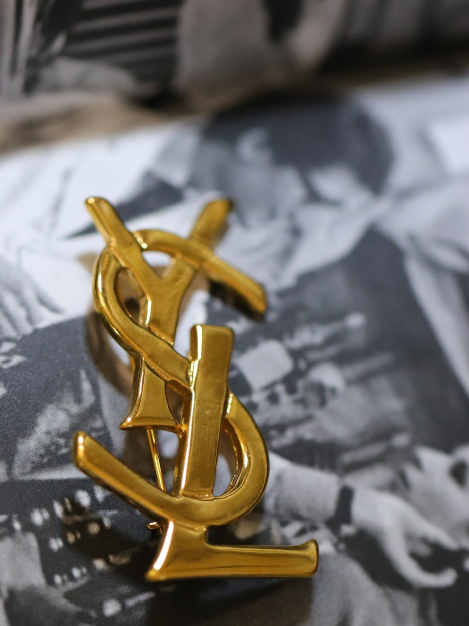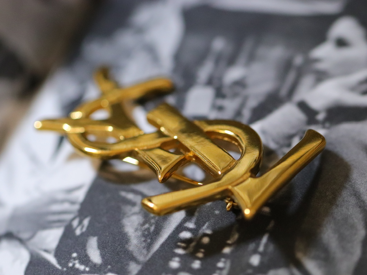圣罗兰YSL经典字母签名LOGO – A6 大尺寸胸针别针;1980S,镀金,3.5X5.5厘米