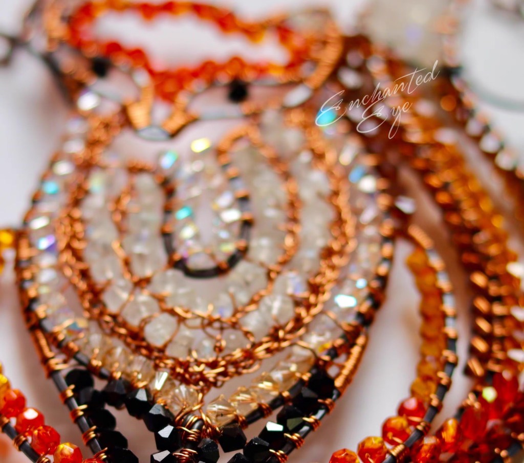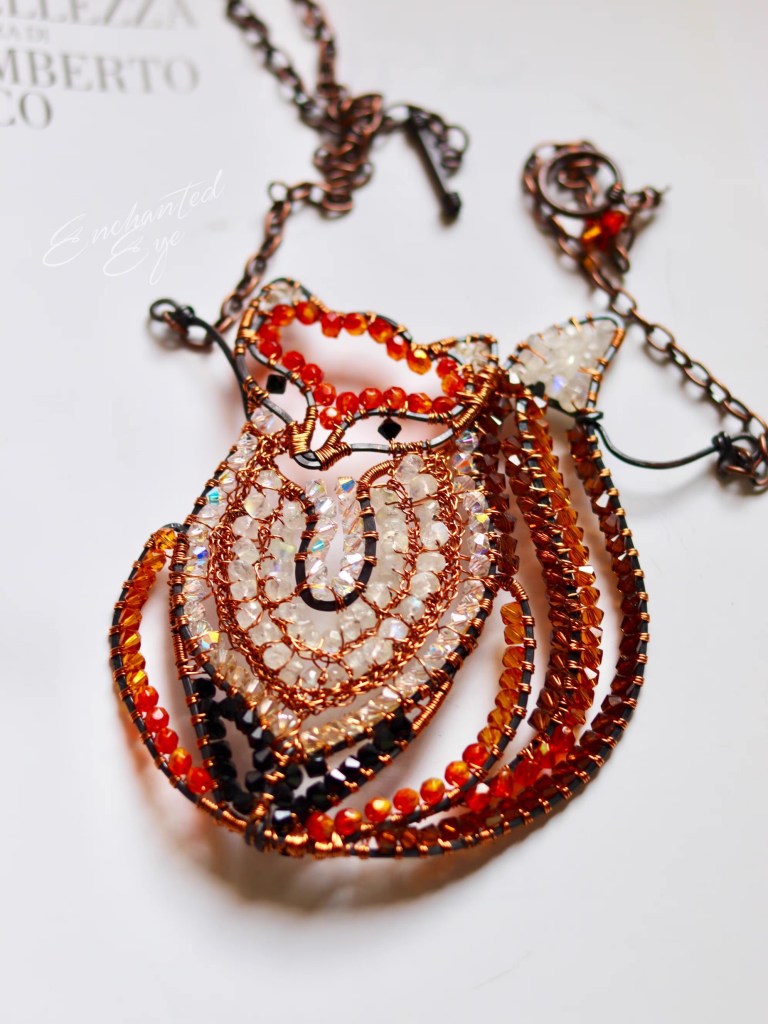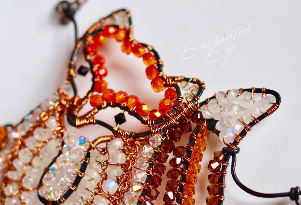 ①.森野狐小狐狸森林火狐 珠饰线艺项链 USA美国手艺人Ruth;红铜/施华洛世奇/天然月长石/捷克复古琉璃珠等;9X10.5CM,链长约30英寸(可按需帮修改长度);金属铜均为涂有双层EVERBRITE PROTECTA-CLEAR保护层,油膜质感,有效避免氧化,表面光滑且富有光泽感