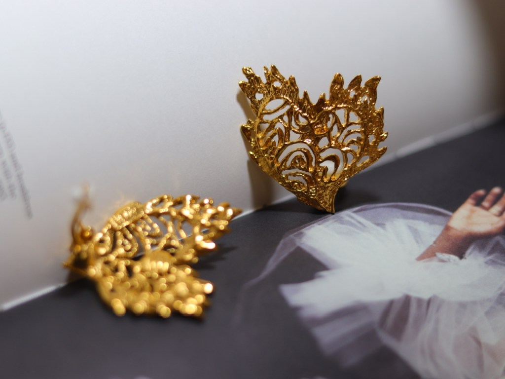 • ②.「爱与安心之所」鸟与巢耳钉耳环;英国手艺人Magnolia作品;自然主义/现代主义;一个金丝鸟巢(灵感源自亚马逊的织巢鸟(Oropendola)):一只银鸟温柔守望着一只银蛋。巢穴穿过树枝圆环,彼此嵌合,像一个不断循环的场景。它像极了一种关于“家”的意象,或是关于守护、孕育与存留的记忆。鸟与巢的关系是庇护,也是责任;是安放,也是牵引。正如”家”不只是温柔的归处,也关乎时间、付出,以及持续发生的循环。镀24k金纯银+纯银(鸟与蛋);整体约4cm×1.1cm(手工编织,每件略有差异)|x9526