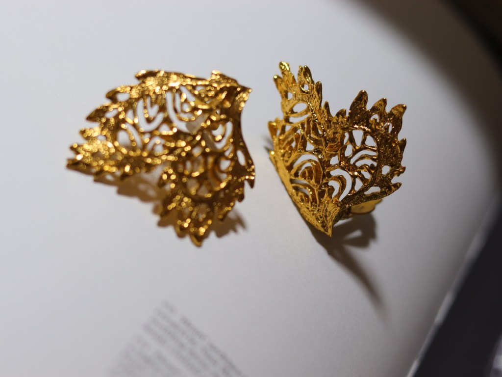 ②.「爱与安心之所」鸟与巢耳钉耳环;英国手艺人Magnolia作品;自然主义/现代主义;一个金丝鸟巢(灵感源自亚马逊的织巢鸟(Oropendola)):一只银鸟温柔守望着一只银蛋。巢穴穿过树枝圆环,彼此嵌合,像一个不断循环的场景。它像极了一种关于“家”的意象,或是关于守护、孕育与存留的记忆。鸟与巢的关系是庇护,也是责任;是安放,也是牵引。正如”家”不只是温柔的归处,也关乎时间、付出,以及持续发生的循环。镀24k金纯银+纯银(鸟与蛋);整体约4cm×1.1cm(手工编织,每件略有差异)|x9526