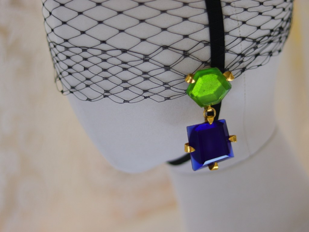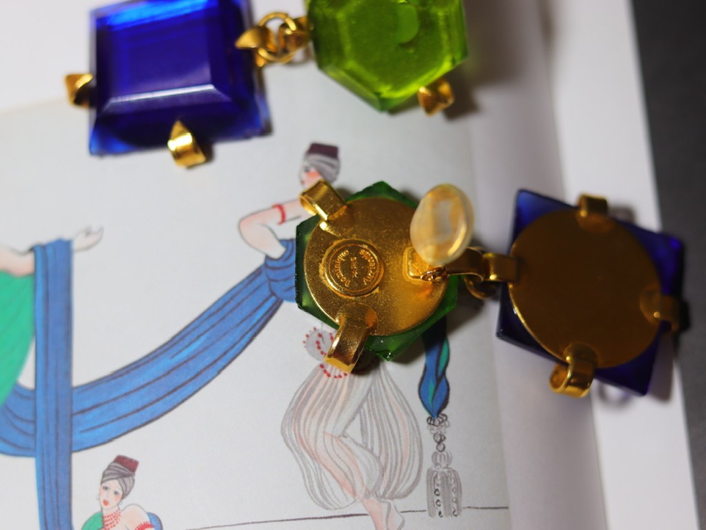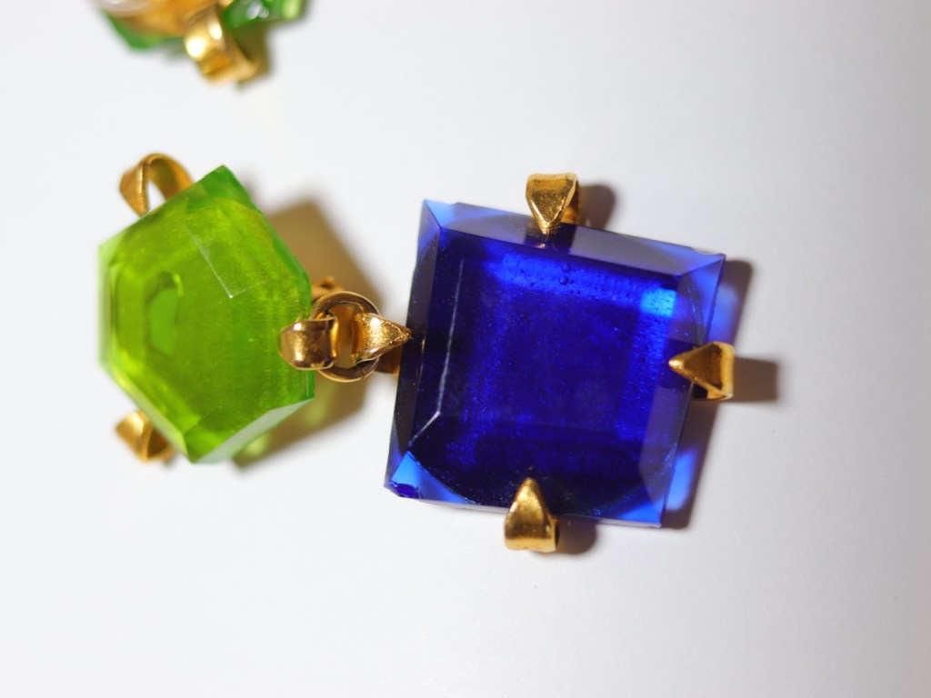 ③.上耳巨美·靛蓝芥末绿切面方块·镀金大耳环·80年代DA;有个角磕了一点点,瑕不掩瑜(也有可能是玻璃制作过程中产生的小气泡导致缺口); 现代主义(20210322)