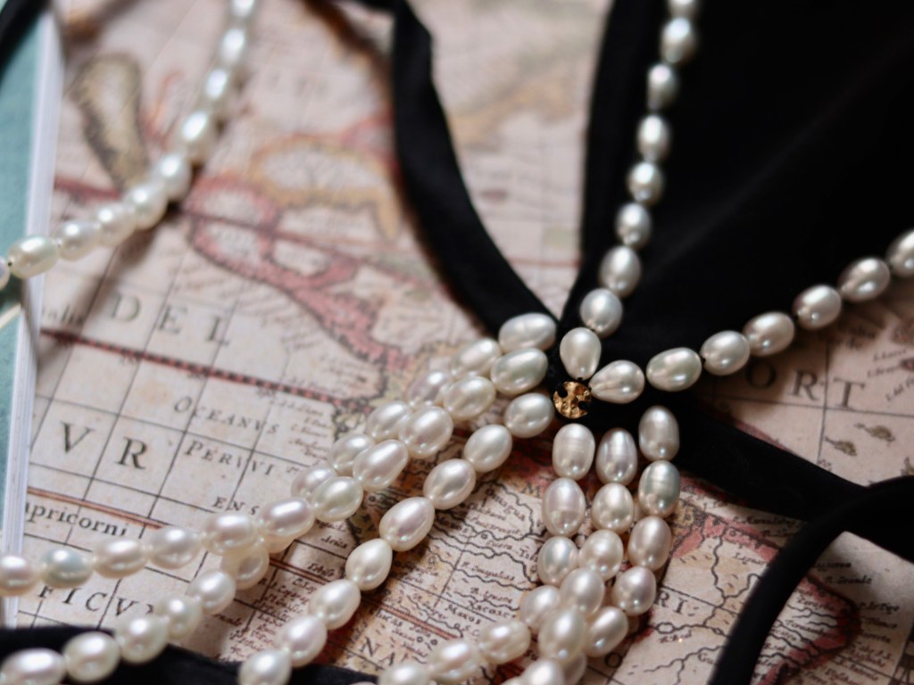 • ②.睡莲耳环;Art Deco+自然主义;以不规则的睡莲为形,花瓣呈平面缓缓展开,黑色珐琅构成沉静而集中的色面,中央点缀弯垂的巴洛克异型白色珍珠,形成优雅且柔和的对比。整体结构对称规整中带着略随意慵懒的气息,色彩与比例克制。睡莲常与水面相关:「安静、平展,呈现一种不被打扰的存在方式」。背面标记925;重约6.7g;直径约2.5cm;925纯银镀金/珐琅/淡水珍珠;美国|x8526