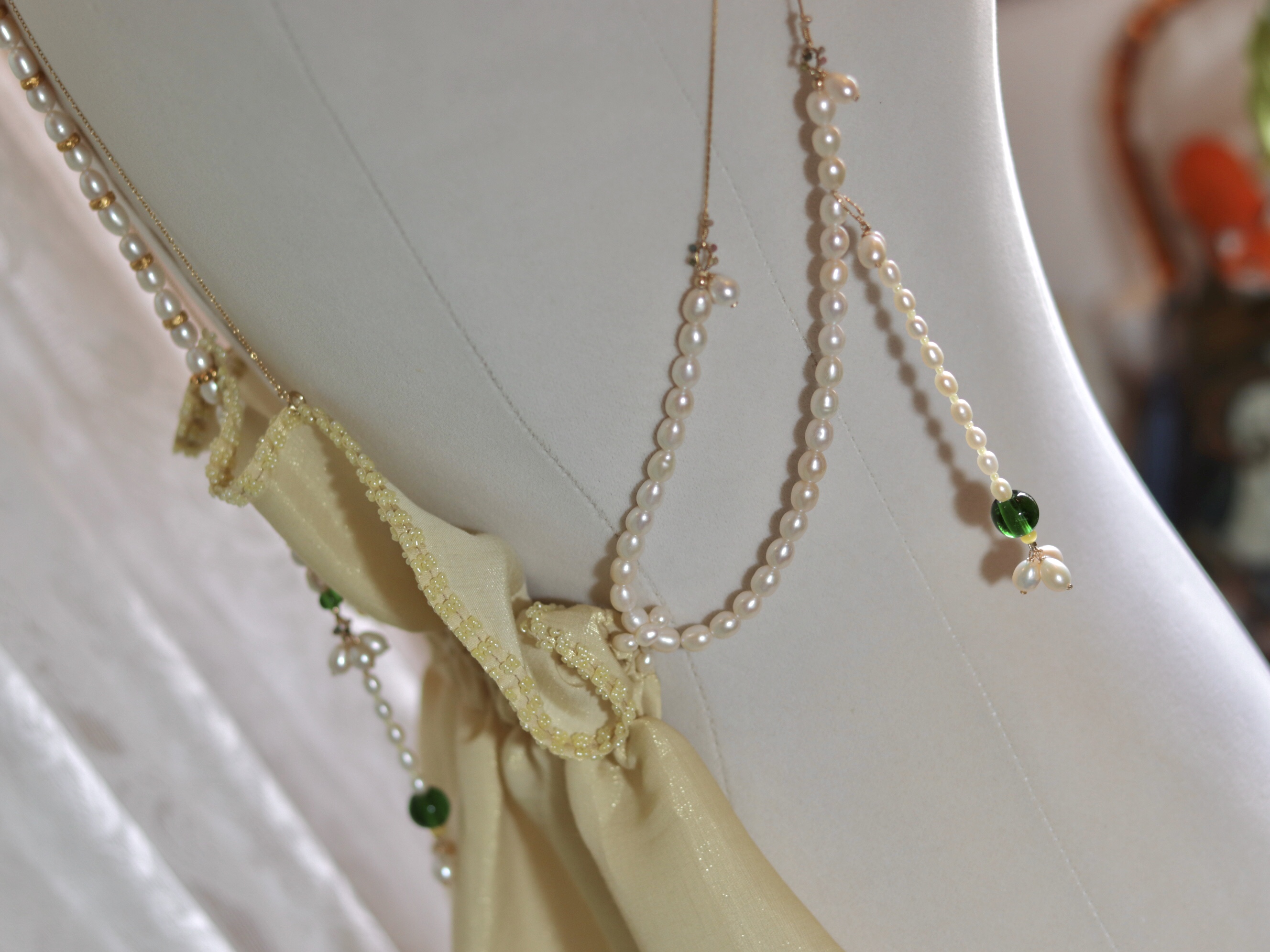 这一系列的珠链饰部分都是可以同衣料拆分,当作身体链等单独使用的。