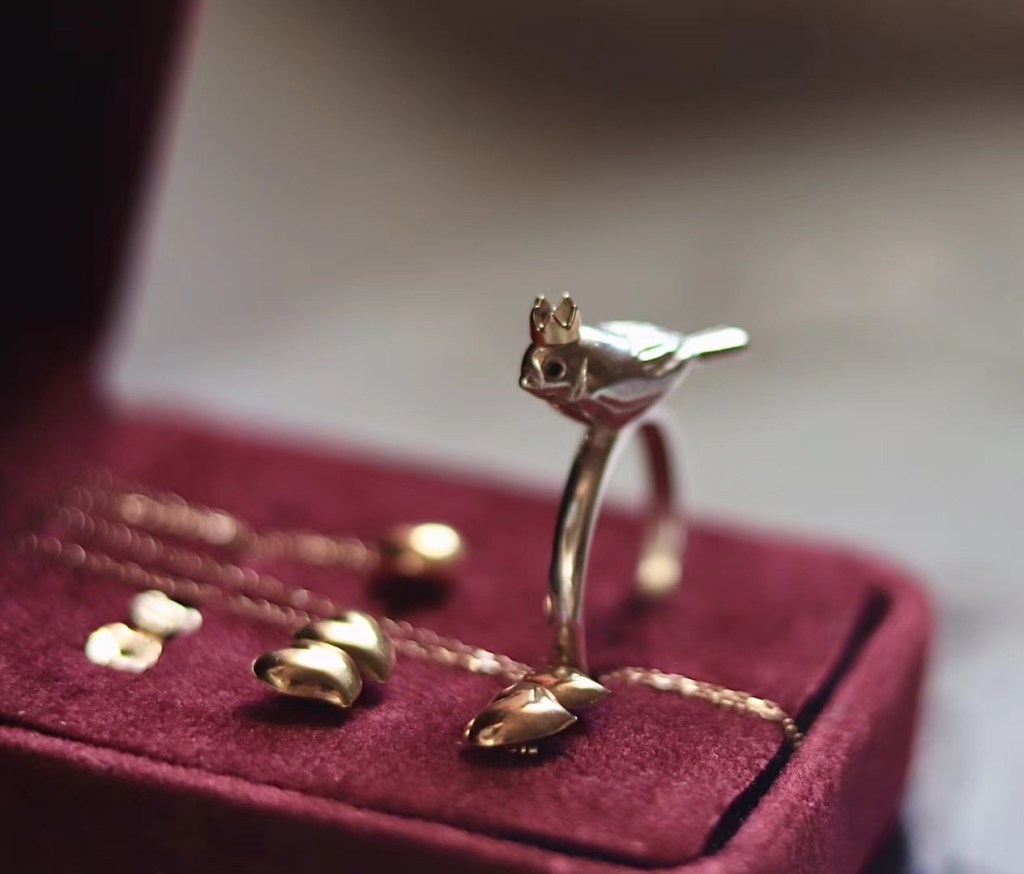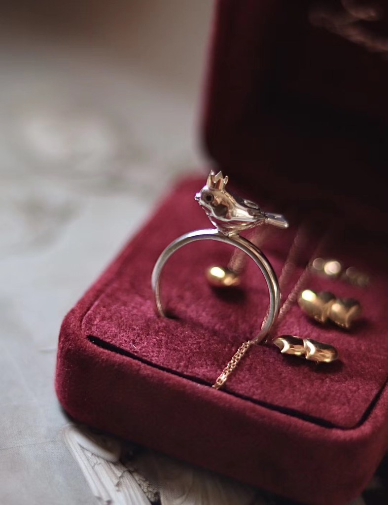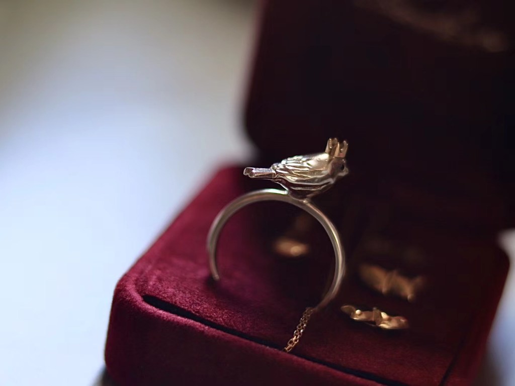 ②③.「像国王一样思考,像侍从一样勤劳,像小鸟一样自由 」|{将人生投入真正有意义的事情 };小鸟王·戒指环·英国手艺人SarahMeredith;钻石 / 925纯银 / 18k金;鸟儿长约16mm;定制尺码;有刻字服务(+29美金,字母/短语/铭文等)