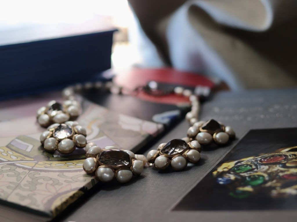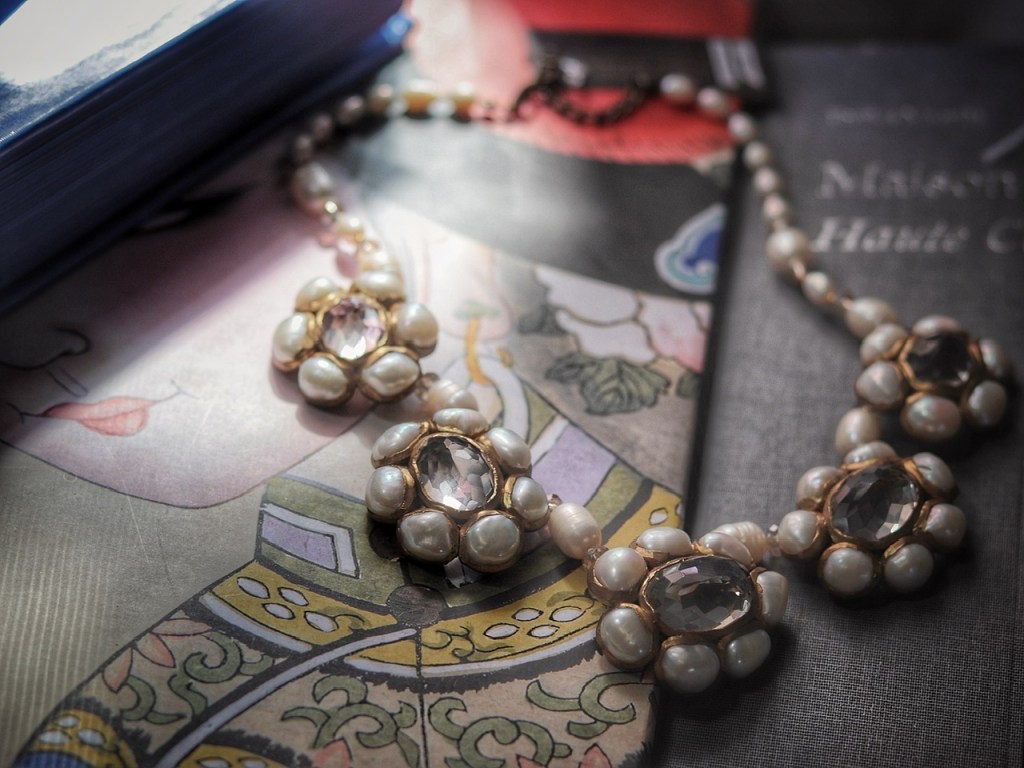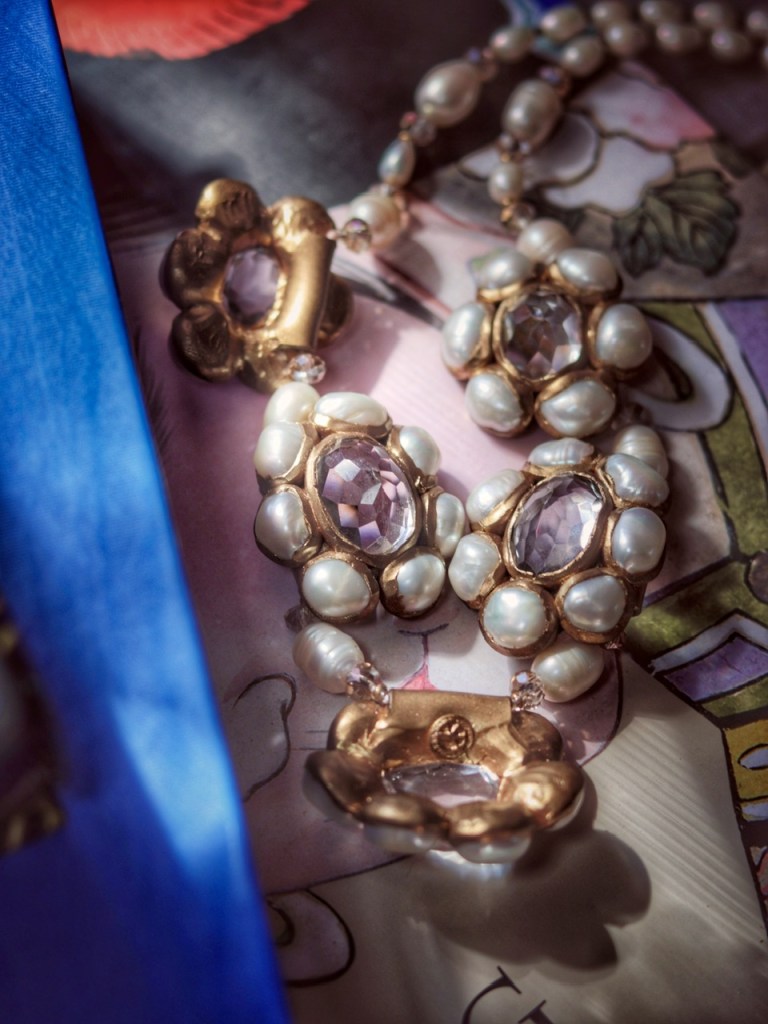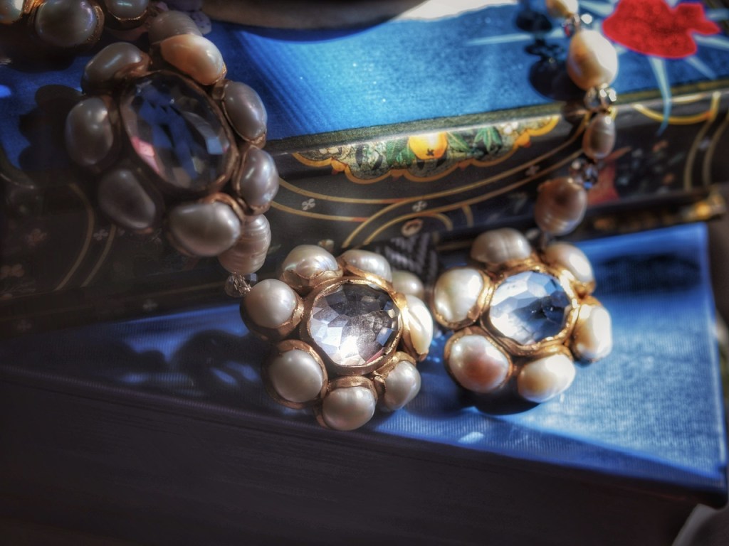 ①③.「弗洛拉·花神|天使白」系列;UK英国手艺人Kotomi;切面天然白水晶/巴洛克淡水珍珠/奥地利水晶/软陶/金属粉/黄铜等;该系列已绝版(3件)