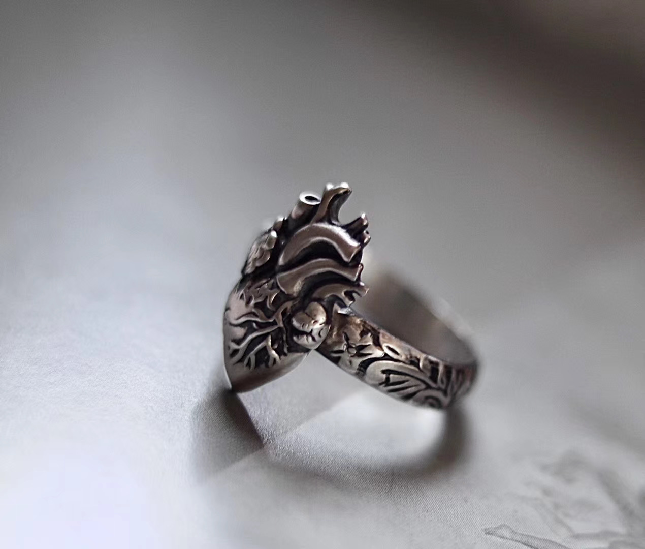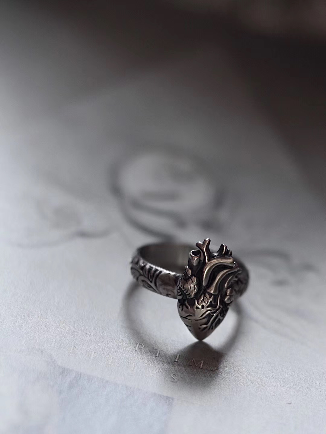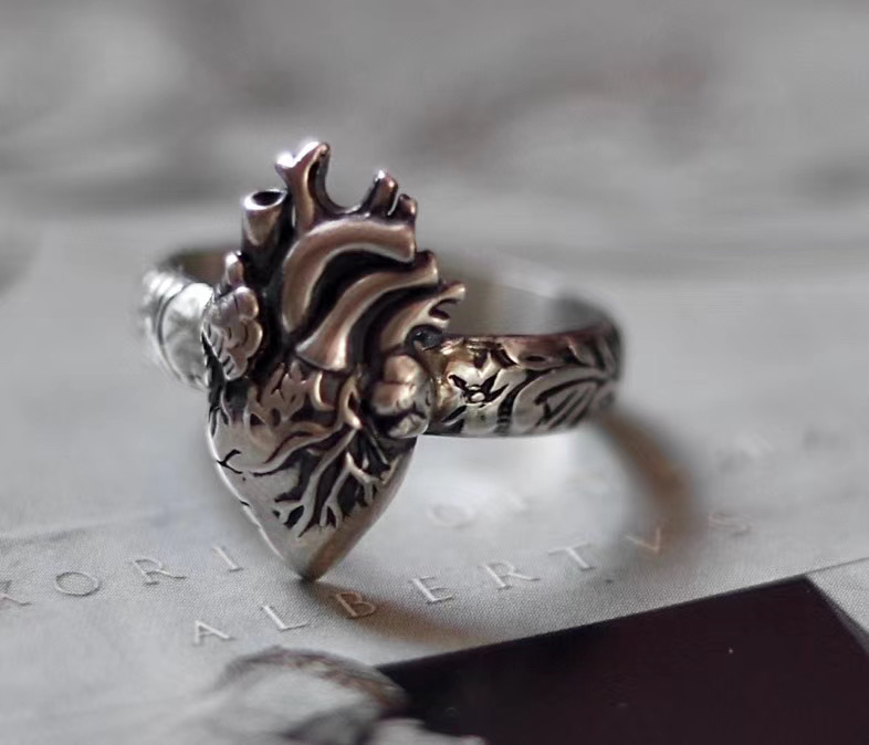 维多利亚蒸汽朋克式·解剖学·心脏戒指;USA手艺人Celia;925纯银,心脏1.9×1.1cm;定制尺码