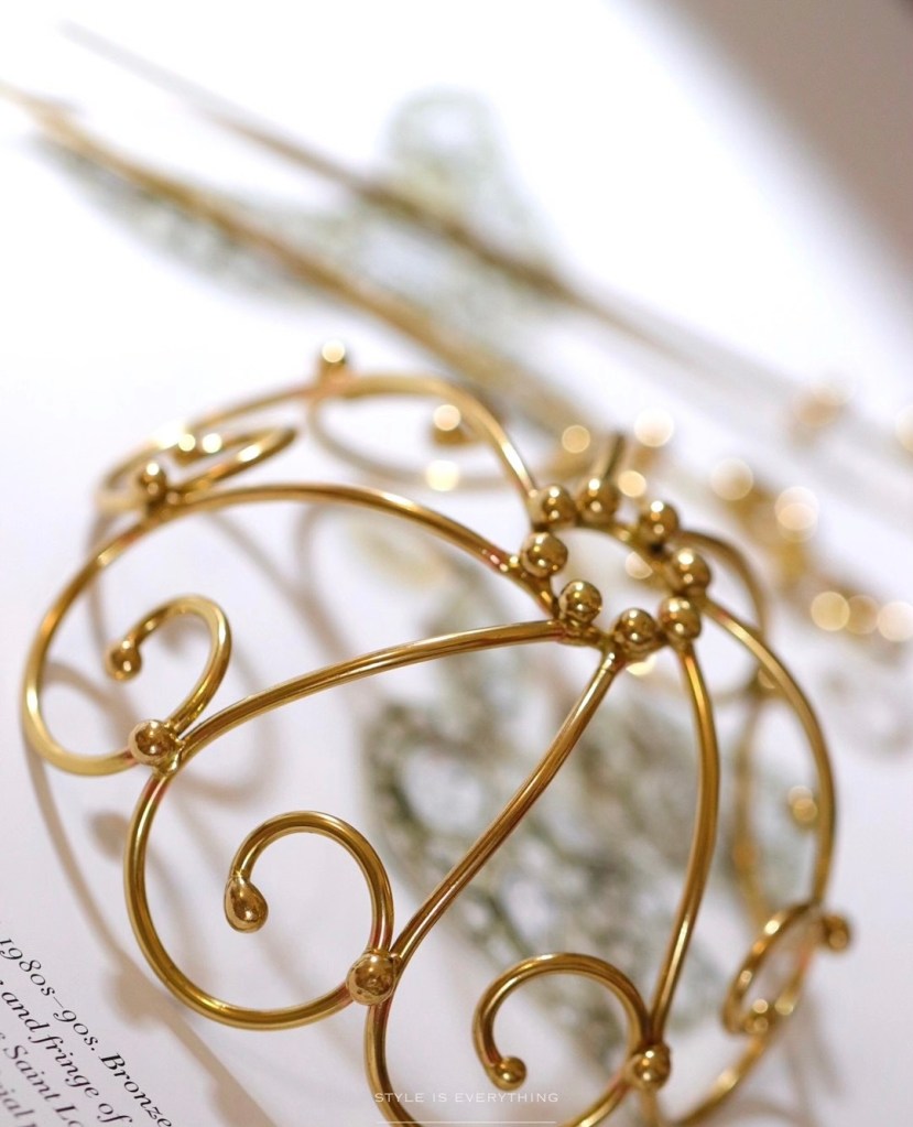 ②.「爱与安心之所」鸟与巢项链;英国手艺人Magnolia作品;自然主义/现代主义;一个金丝鸟巢(灵感源自亚马逊的织巢鸟(Oropendola)):一只银鸟温柔守望着一只银蛋。巢穴穿过树枝圆环,彼此嵌合,像一个不断循环的场景。它像极了一种关于“家”的意象,或是关于守护、孕育与存留的记忆。鸟与巢的关系是庇护,也是责任;是安放,也是牵引。正如”家”不只是温柔的归处,也关乎时间、付出,以及持续发生的循环。镀24k金纯银+纯银(鸟与蛋);巢约3cm×1.3cm(手工编织,每件略有差异),链长约50cm|x9426