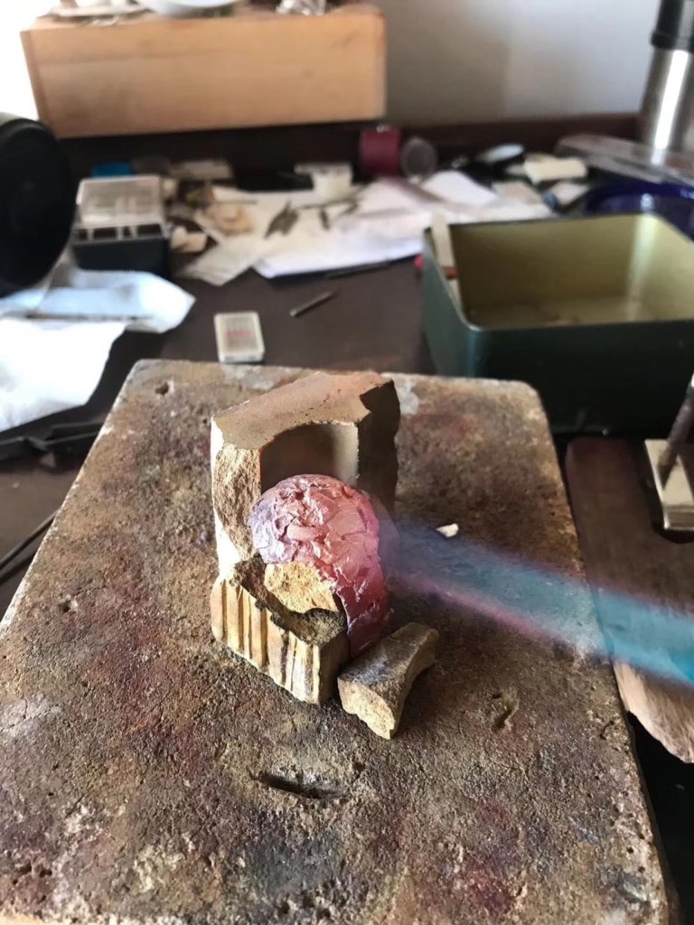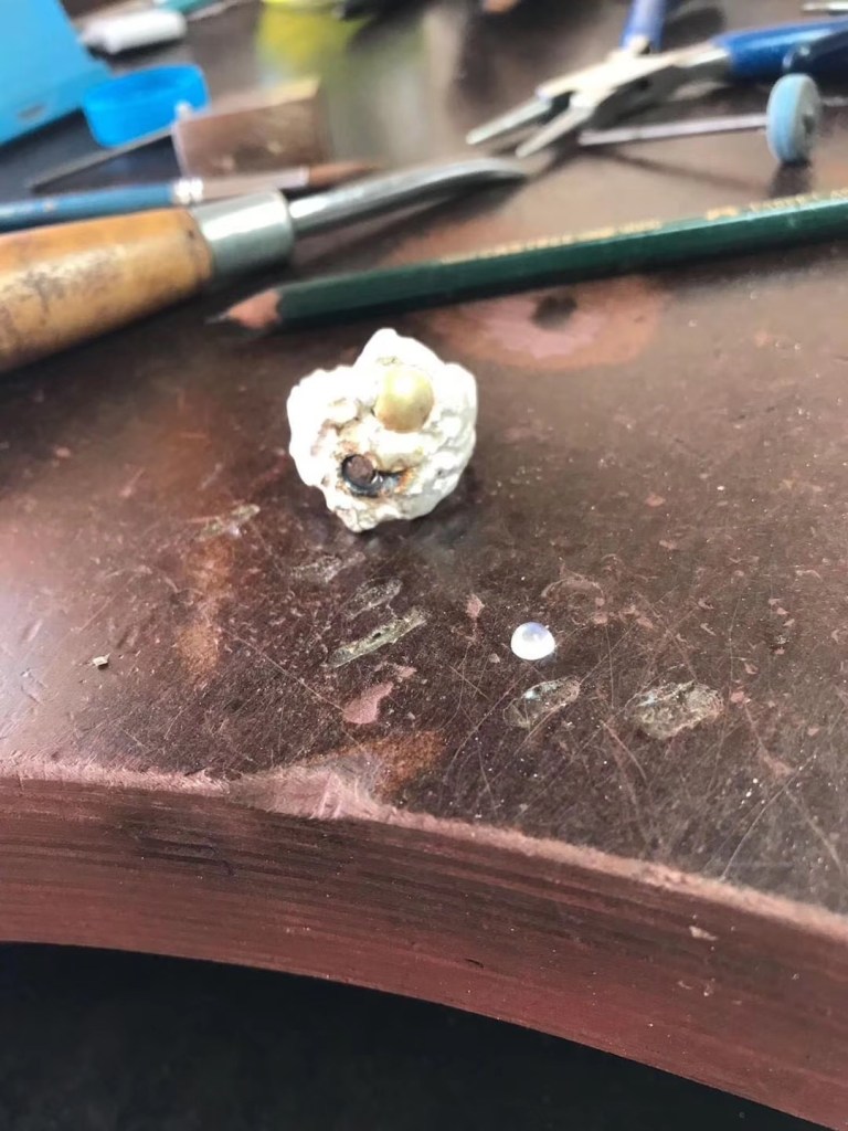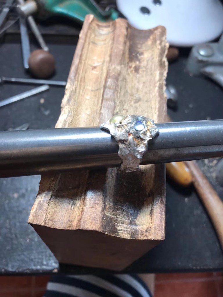 ③.月球Moon陨石坑·月表·金珠月光石戒指环;Spain西班牙Tania M.夫妇工作室原创手工制作;绝版(201907)