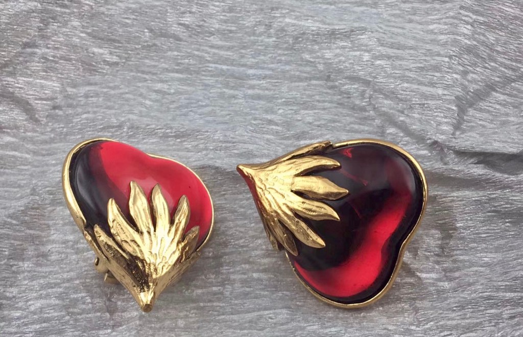 ②.热带鱼金色鱼形80s大耳环;超绝海岛夏日风情;拉丝金色表面呈现柔和光泽,两只鱼分别对应左右方向,呈迎面游动的姿态。灵动可爱,结构立体而流畅,贴合耳部。背面印有意大利品牌签名;约5.7×3.8cm;镀金;美国|x8426