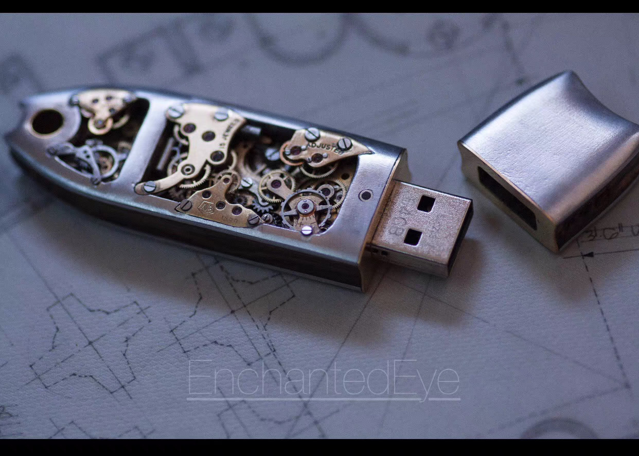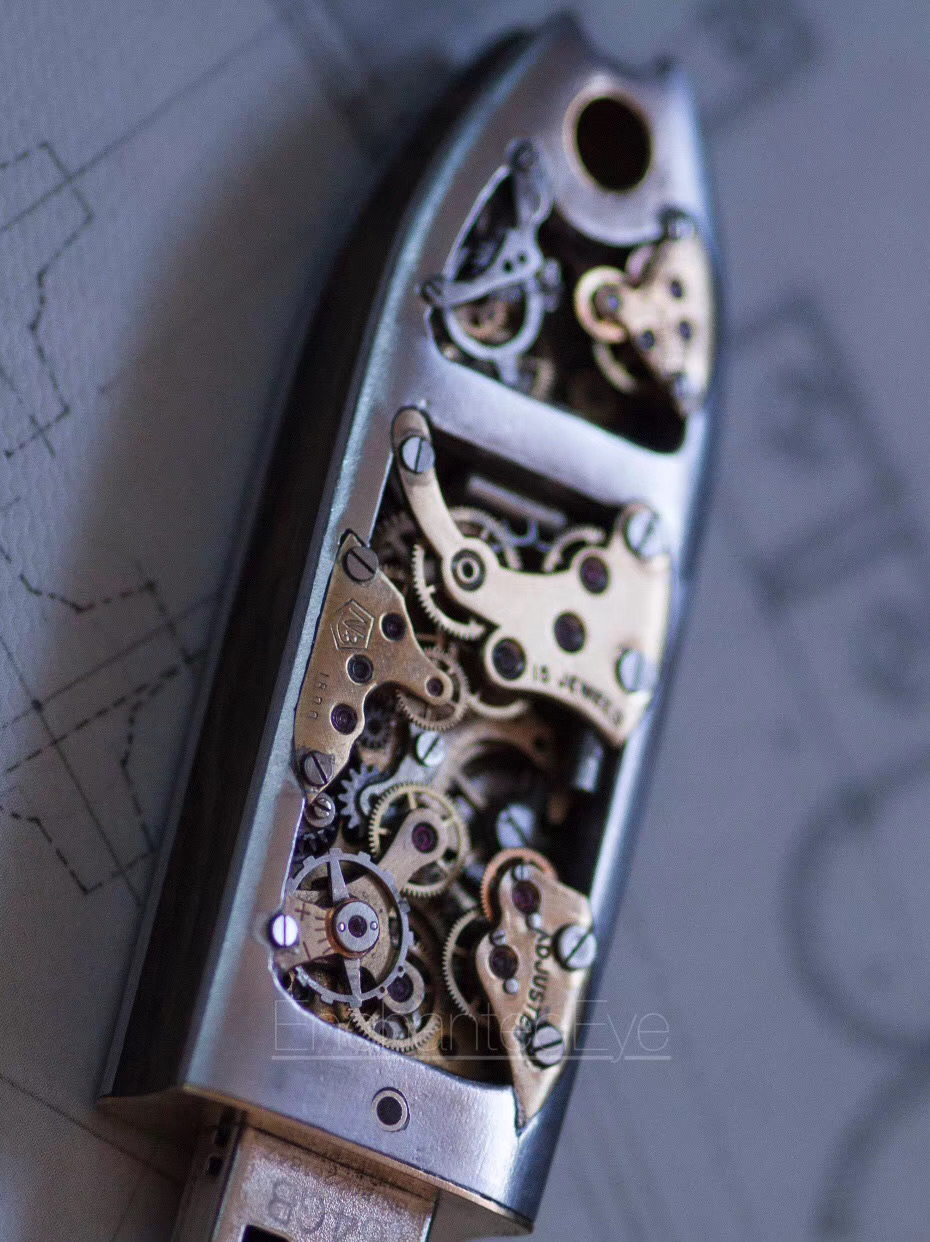 ③.蒸汽朋克u盘;英国手艺人RobinSmith;仅约7厘米长,肉眼观甚精致;u盘上的木料为珍贵的孟加锡黑檀+专属刻字;木香浓厚的特制盒子为桃花心木(Mahogany),欧洲皇室家具御用品,也是世界最名贵木材之一(201808)