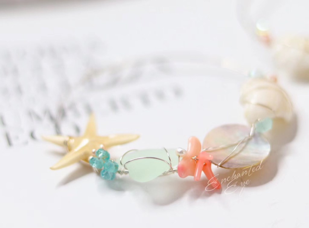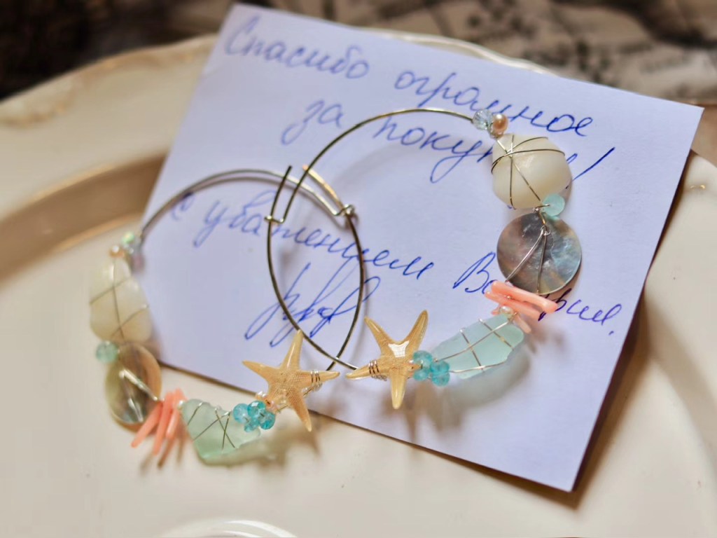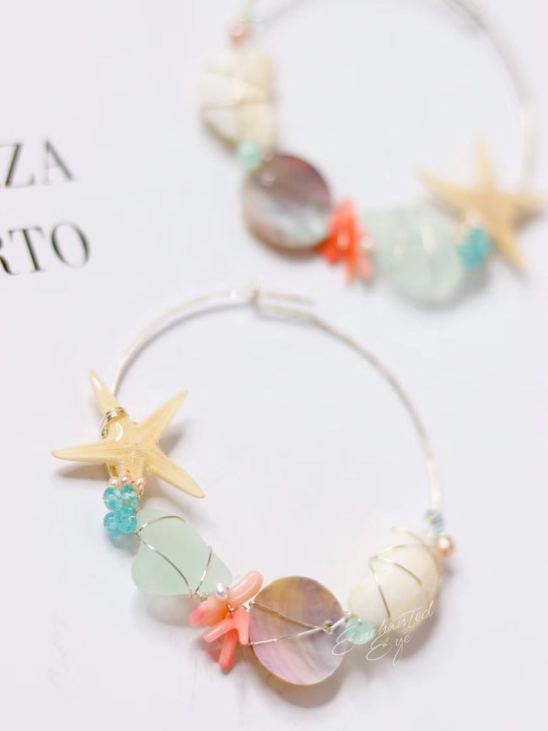 ③.天然贝壳珊瑚珍珠母贝环形耳环;Hawaii夏威夷手艺人;清新淡雅美人鱼系,自然主义