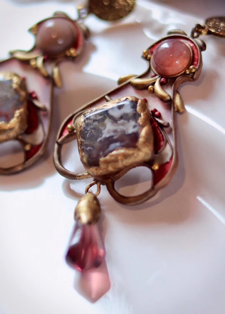 ③.巴洛克玫瑰·19世纪末新艺术首饰复兴;Russia俄罗斯手艺人Valeriya;软陶/手绘/天然水晶半宝石/黄铜等(20190329)