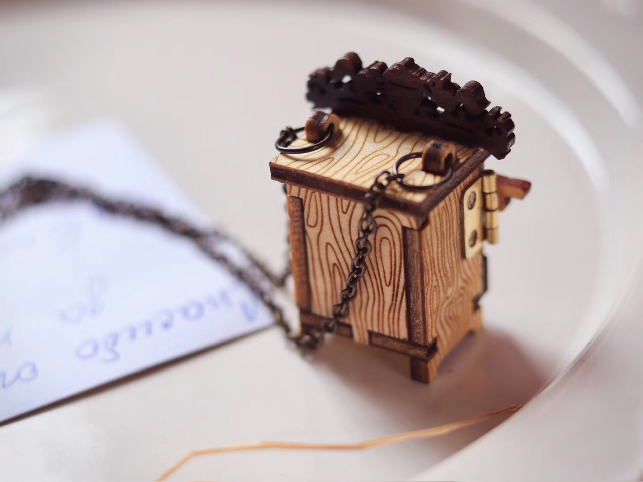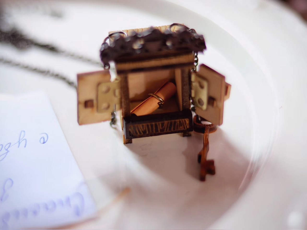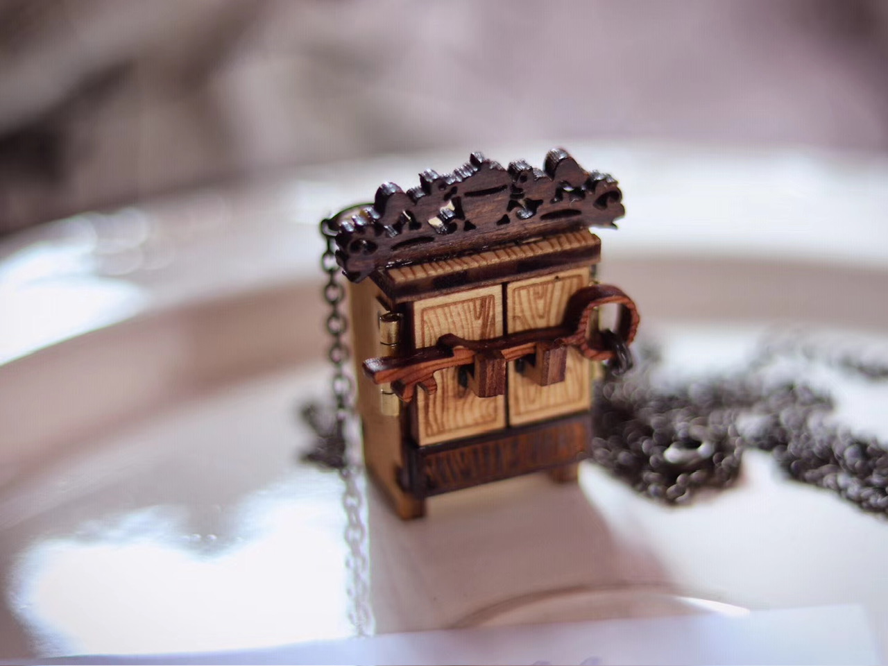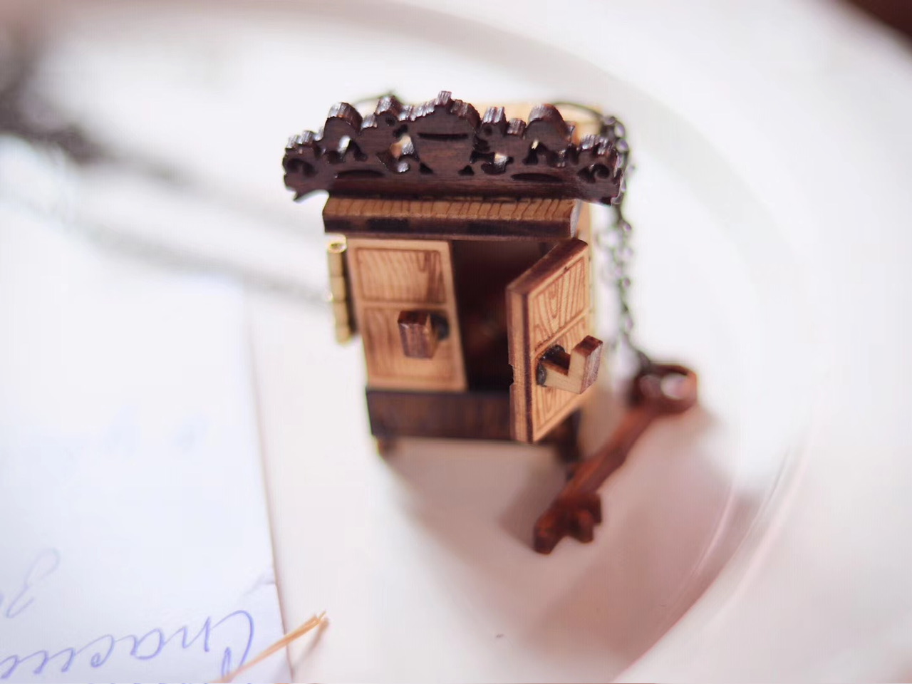 古朴雅致·神秘木制小柜子”带钥匙和书信”项链;Singapore新加坡手艺人Lorraine