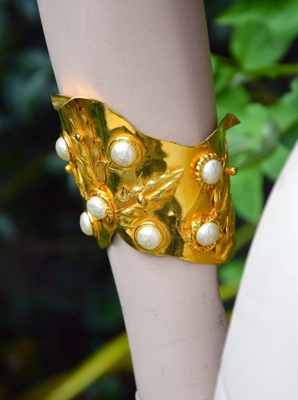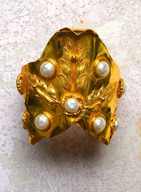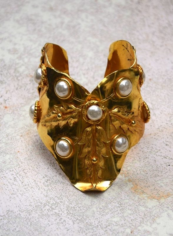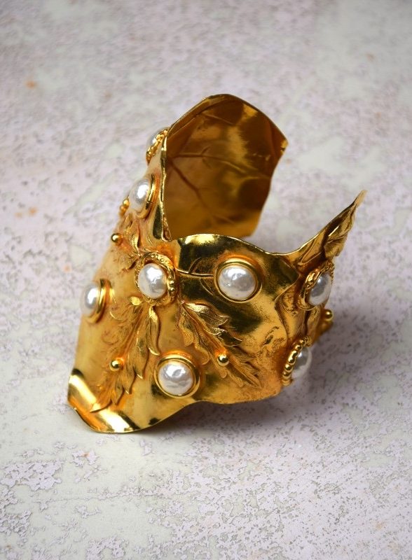 Dominique Aurientis于20世纪80年代在巴黎创立的同名珠宝品牌。她曾在多家时装品牌从事配饰设计工作,之后开始以个人名义推出珠宝系列,很快因其极具辨识度的设计而受到关注。Aurientis的作品以强烈的造型感、厚重的金色金属、自然元素与古典装饰语言为特色。橡树叶、月桂叶、绳索、太阳放射纹等图案经常出现在她的设计中,整体风格既带有「古典雕塑」的气息,也融合了80年代巴黎时尚珠宝的夸张与力量感。