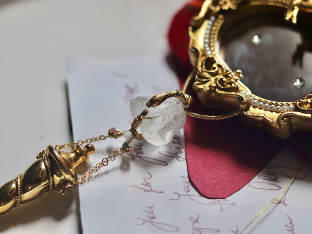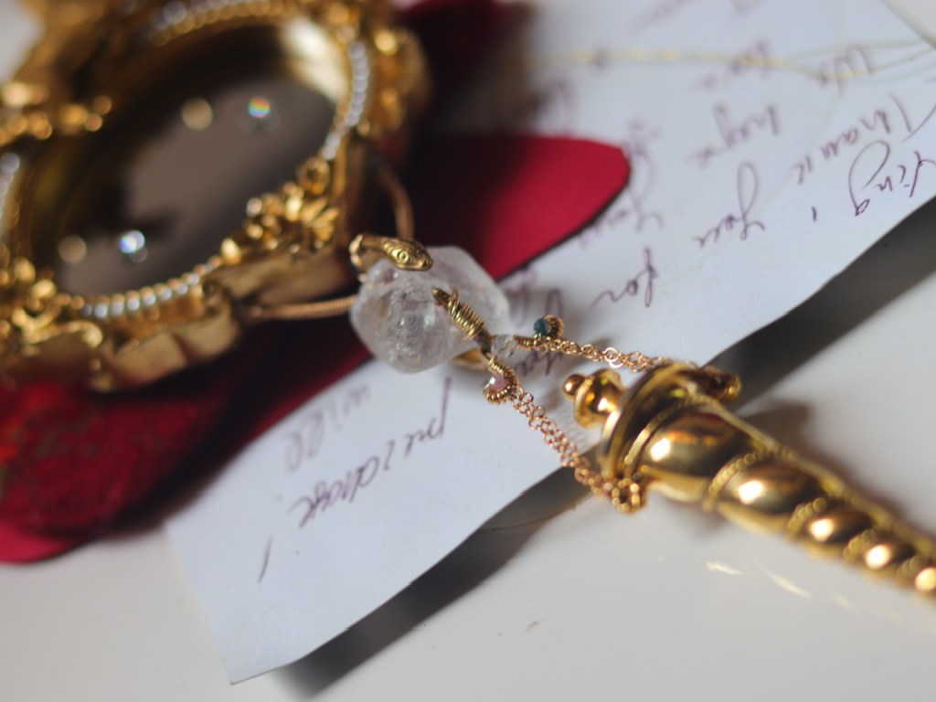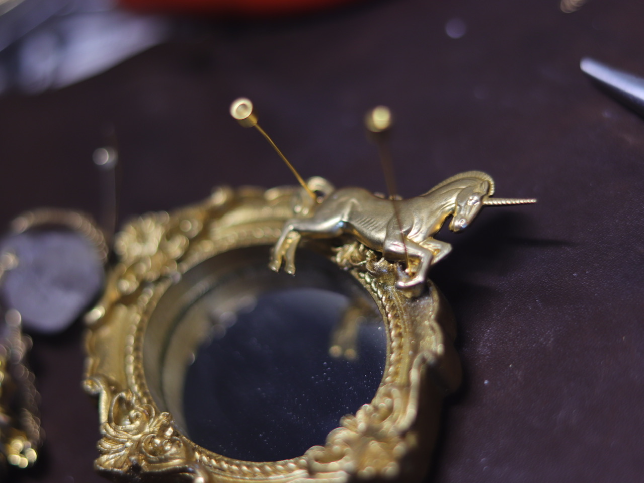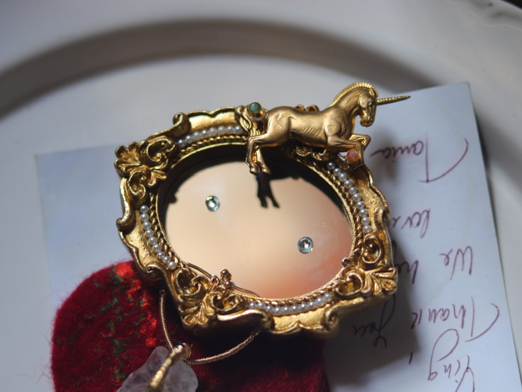 ③.{独角兽}镜子·灵蛇·白水晶原石·80年代美制螺旋角形香水瓶·大胸针;香水瓶当时一眼就决定入手,回来搭配早前分别收集的水晶原石,金属印章和树脂相框镜等,就觉得合适;孤独品(201908)
