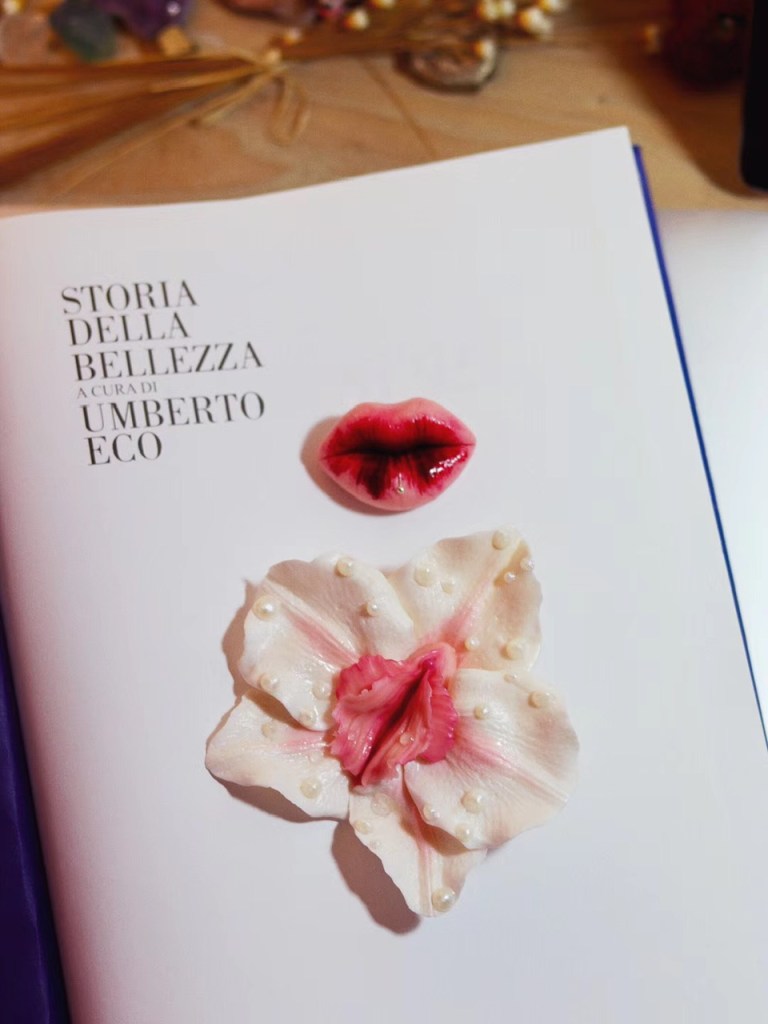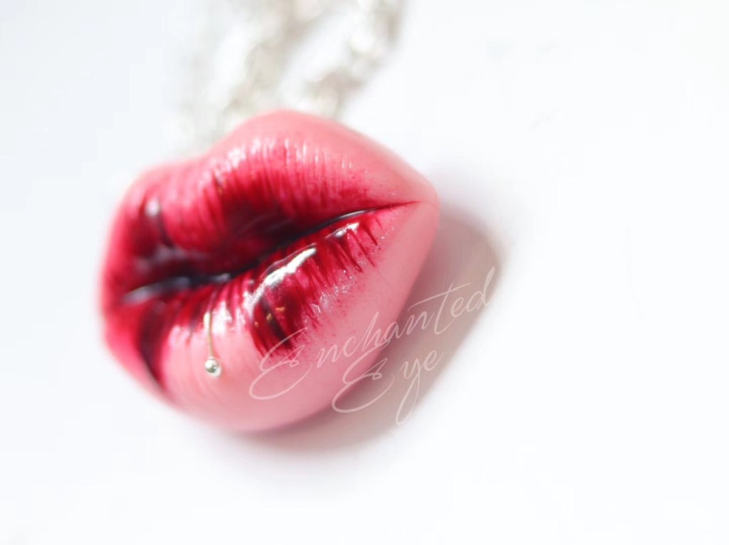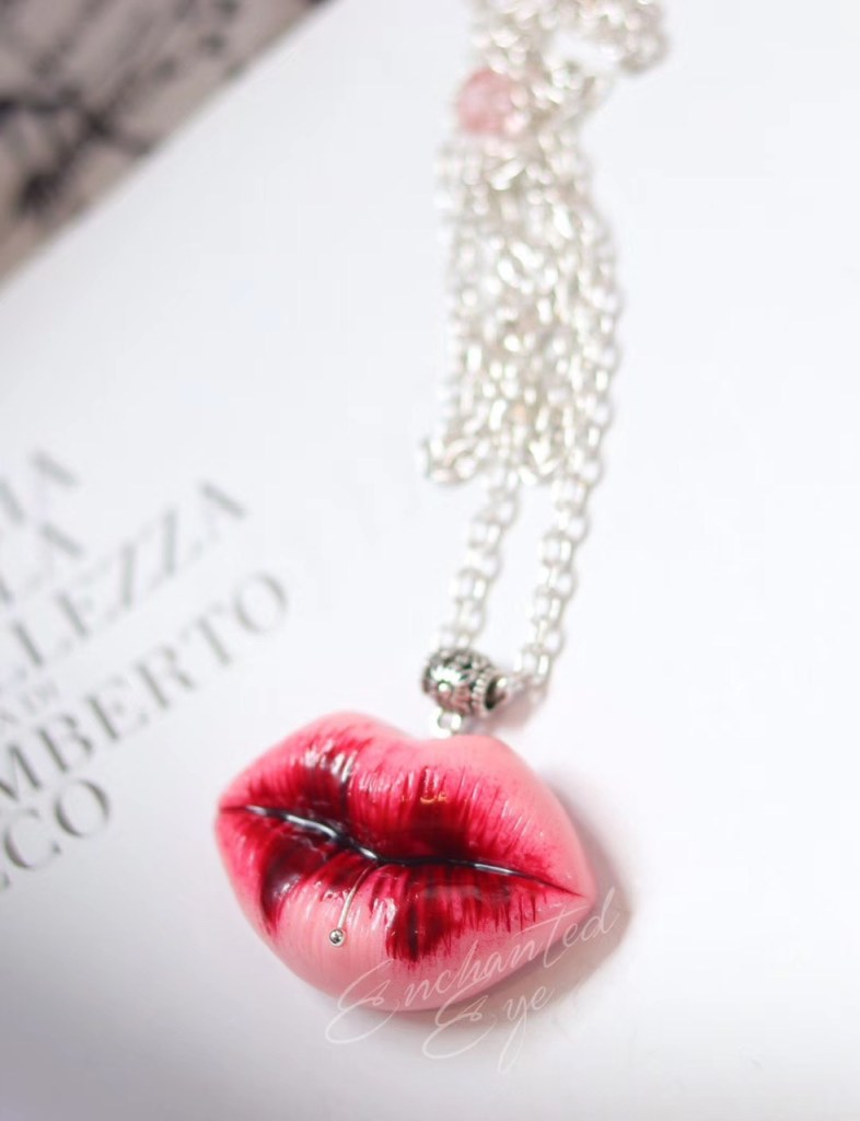③.「女神花&唇」·本质美的象征;{美的本质}生命力的诱惑;软陶彩绘胸针;定制于俄罗斯手艺人Mariya(201806)#S