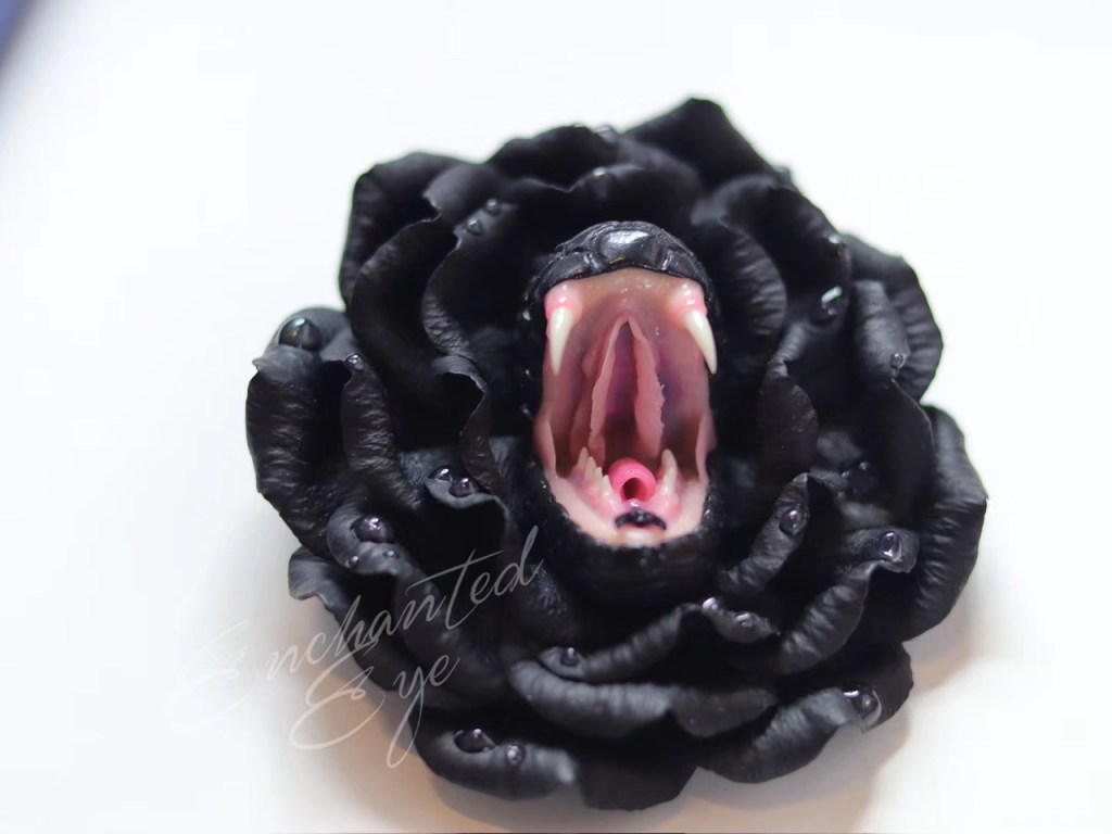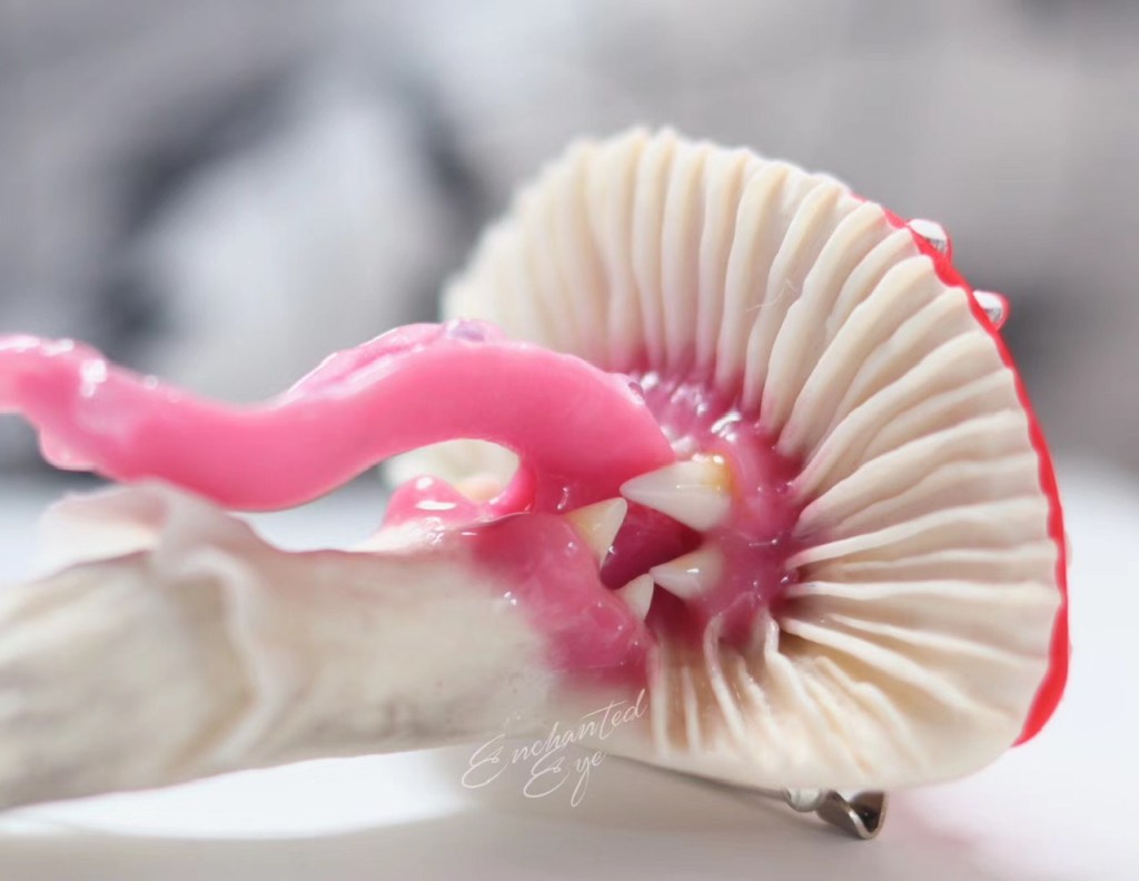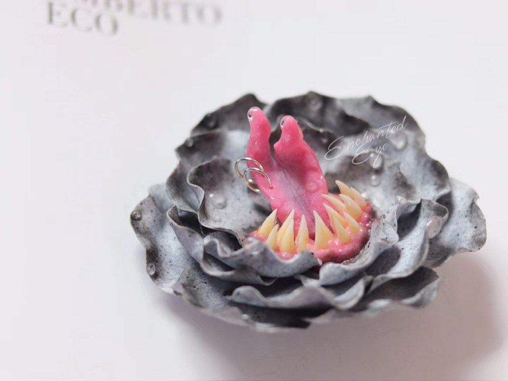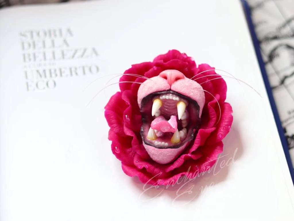 ③.「莉莉丝的花果园」系列·胸针;‘大丽花’蛇/粉红豹花朵,分叉舌蘑菇等,软陶/手绘等;定制于俄罗斯手艺人Mariya(201811)