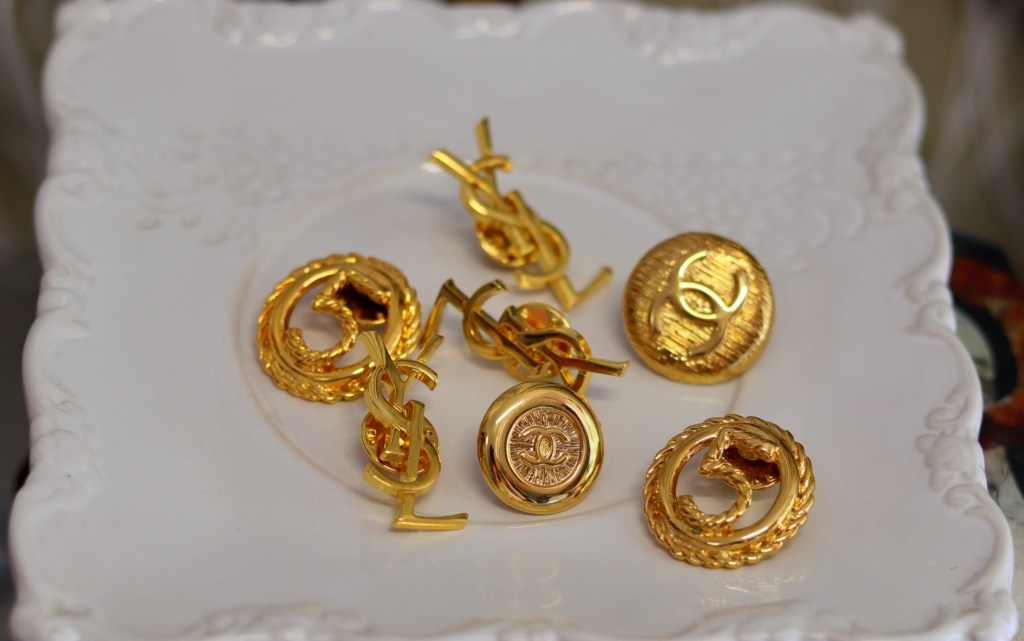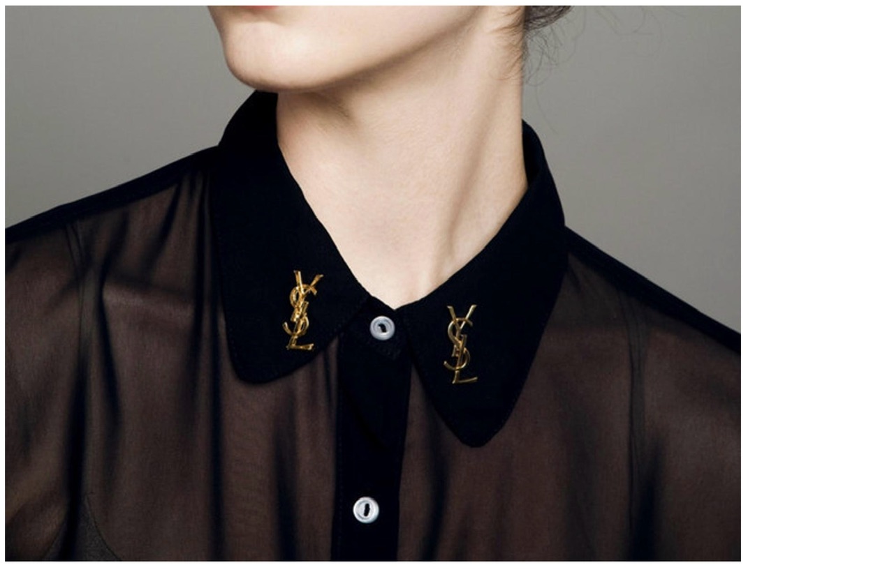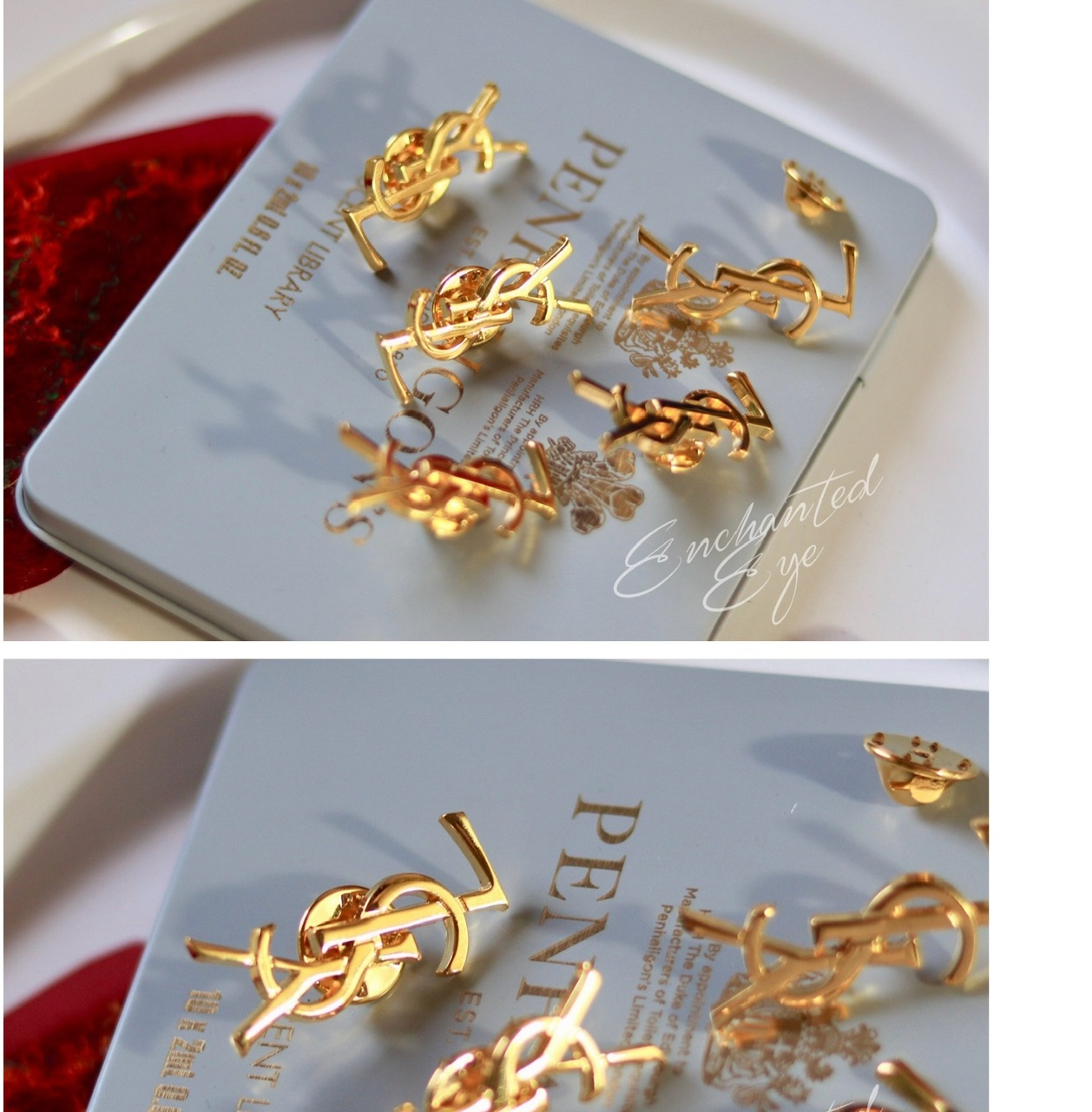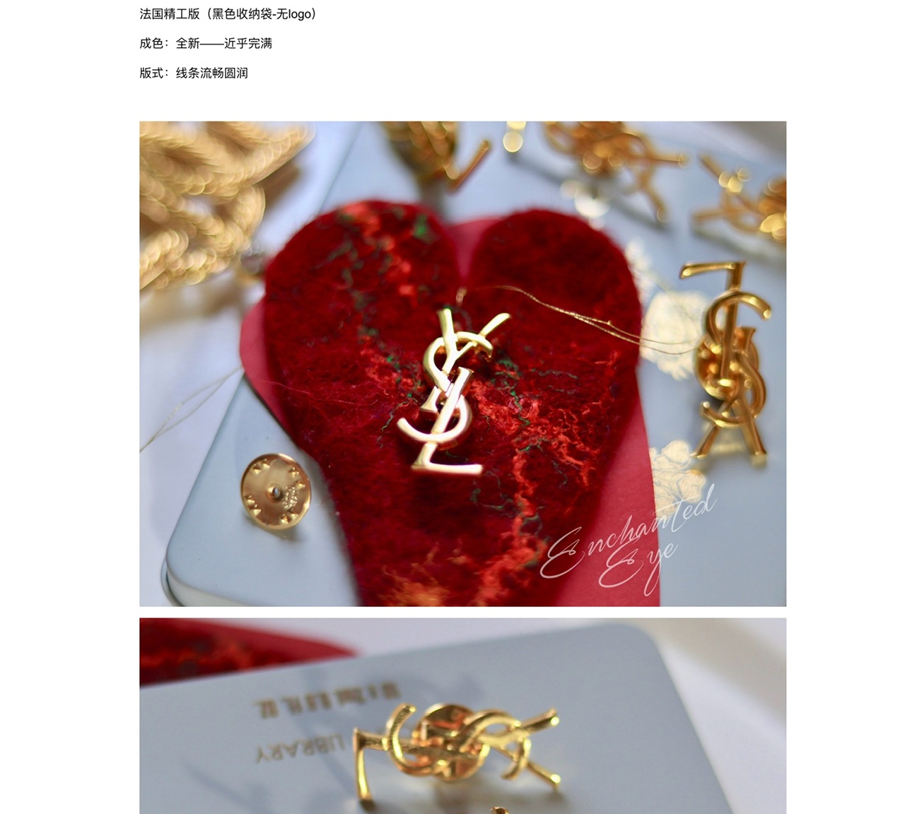 超迷你小胸针·YSL法国制造logo;早期圣罗兰/香奈儿这类品牌为促销自家香水等商品而特别制作的限量小赠品;1980-1990s,Gilded with fine gold (24 Carats)镀24k金;仅约1.2×3.3cm;成色如图-佳-稀有库存品(近乎全新,精工品质);无印记版,本是赠品非上架单品(货源已断,现货余2只)