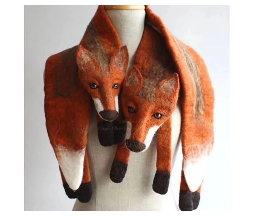 狐狸3D围巾披肩;Poland波兰手艺人Celina;羊毛/手绘玻璃眼珠/金属搭扣等(201808)