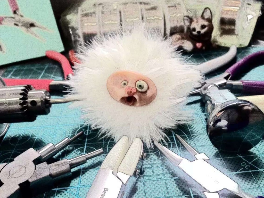 ①.「震惊脸」小毛球怪兽·LittleBallofFur·胸针;脸脸约2×3厘米,含毛绒的话直径约6厘米;软陶/真毛绒/手绘;定制于法国手艺人CheshireStreet;绝版(20150421)