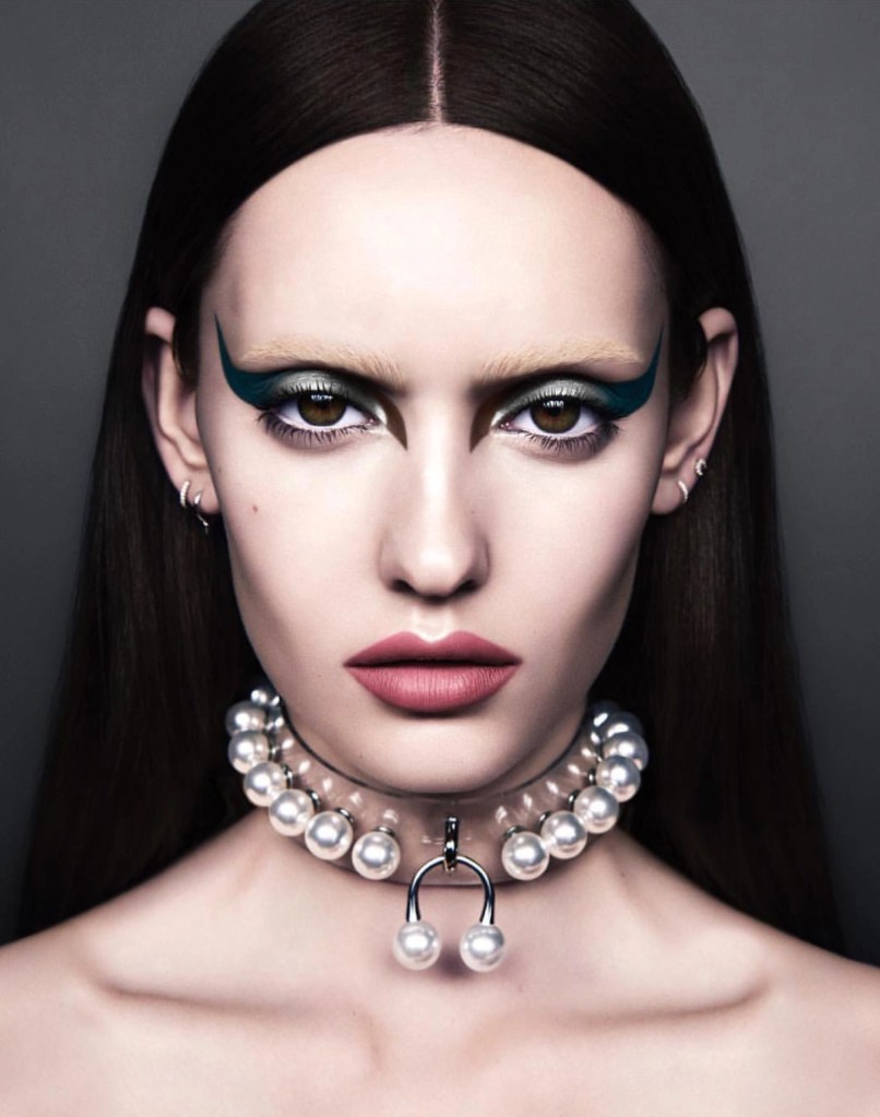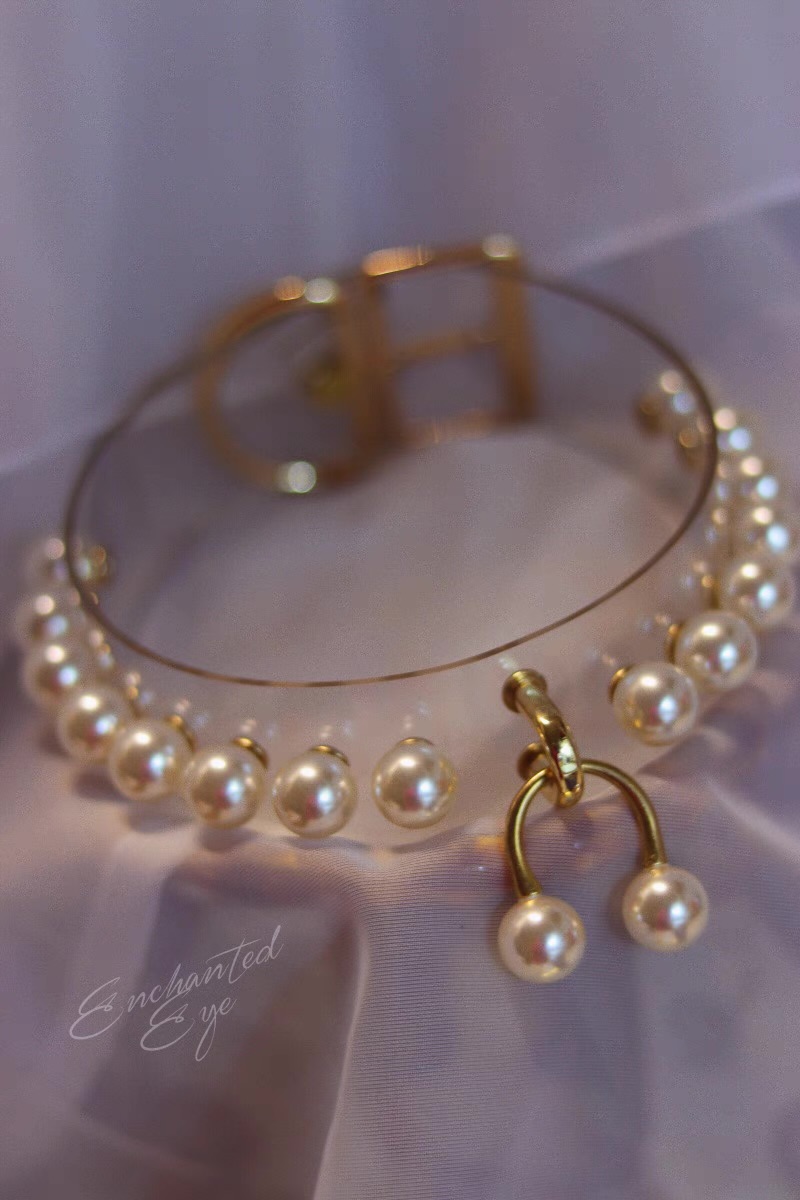 伊娃女王/萝莉朋克·透明项圈;复古未来范·身体装饰艺术;USA美国手艺人YEHA;人造珍珠大铆钉&半环/乙烯基项圈/可调节背扣/镀金金属;S(12-13英寸)1英寸=2.54厘米;保养:乙烯基材质清理后避光阴凉处放置(201912)