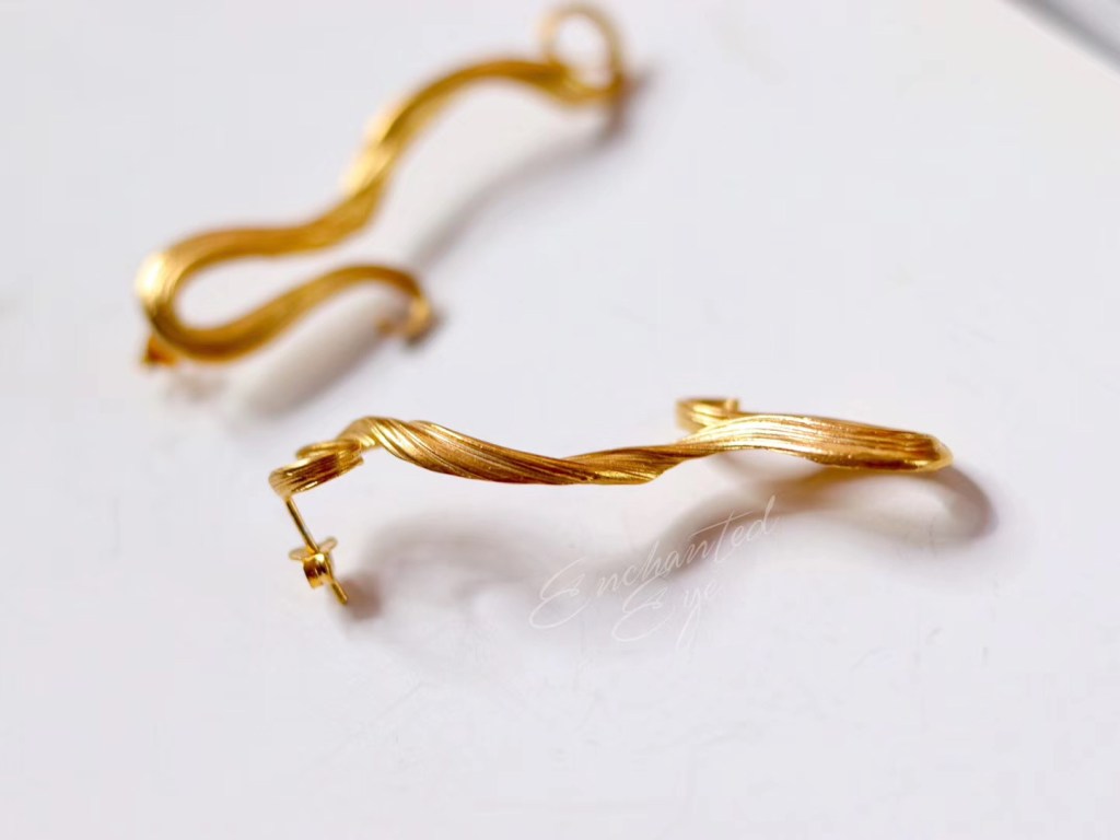 ②.热带鱼金色鱼形80s大耳环;超绝海岛夏日风情;拉丝金色表面呈现柔和光泽,两只鱼分别对应左右方向,呈迎面游动的姿态。灵动可爱,结构立体而流畅,贴合耳部。背面印有意大利品牌签名;约5.7×3.8cm;镀金;美国|x8426
