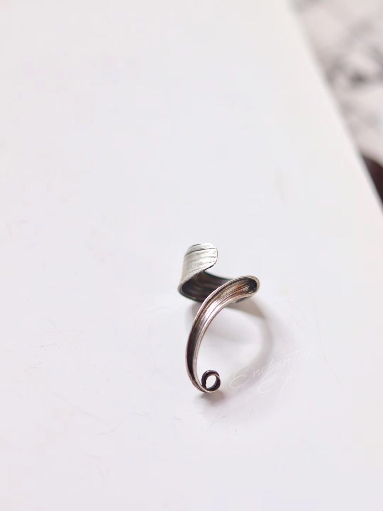 ②.「向内盛开的花儿」碗状罂粟花形戒指环;以色列手艺人Irina作品;新艺术+现代主义;细金戒托承托一枚戴着金色皇冠的黑银质“花碗”,边缘起伏,中央镶嵌海蓝宝。14k黄金/氧化黑925银/海蓝宝;花部约20mm,指环臂约1.3mm;定制尺码;有刻字服务|x9126