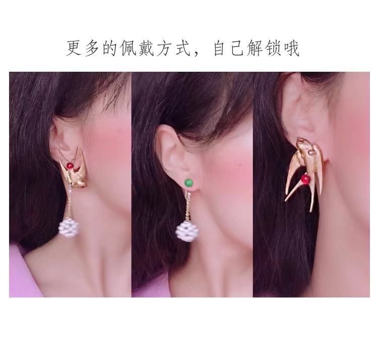 ②.「爱与安心之所」鸟与巢耳钉耳环;英国手艺人Magnolia作品;自然主义/现代主义;一个金丝鸟巢(灵感源自亚马逊的织巢鸟(Oropendola)):一只银鸟温柔守望着一只银蛋。巢穴穿过树枝圆环,彼此嵌合,像一个不断循环的场景。它像极了一种关于“家”的意象,或是关于守护、孕育与存留的记忆。鸟与巢的关系是庇护,也是责任;是安放,也是牵引。正如”家”不只是温柔的归处,也关乎时间、付出,以及持续发生的循环。镀24k金纯银+纯银(鸟与蛋);整体约4cm×1.1cm(手工编织,每件略有差异)|x9526