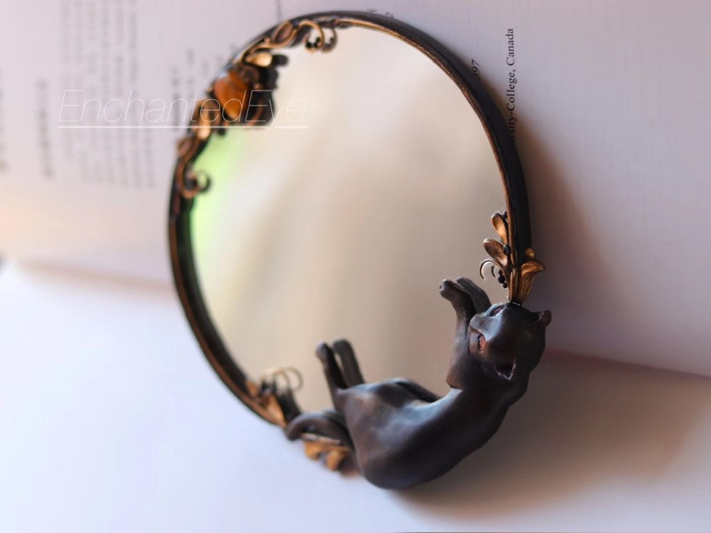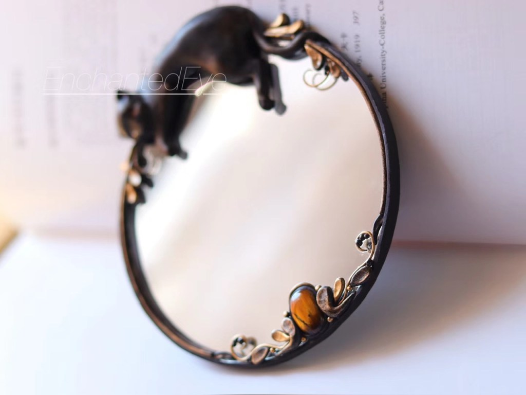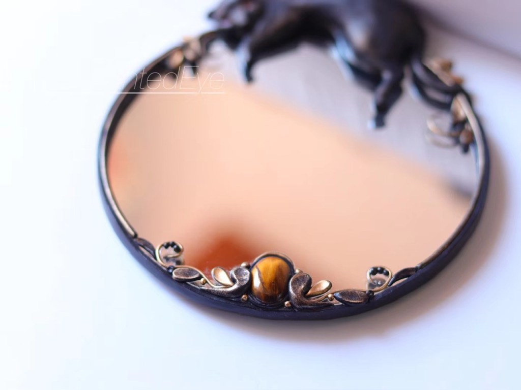 ③.「猫属」猫咪·化妆镜子·闺房;19世纪末新艺术风格;俄罗斯手艺人Valeria;软陶/虎眼/镜子等;孤独品(20181005)