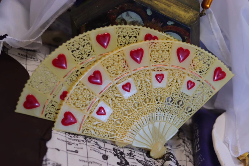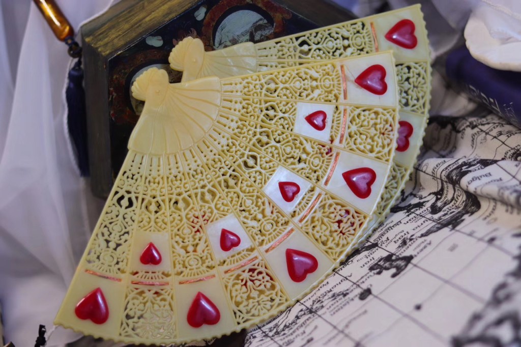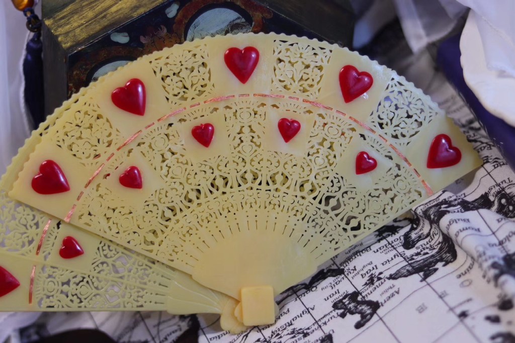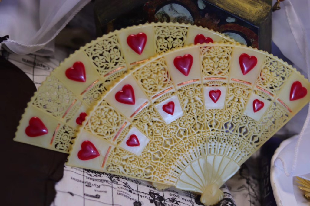 ①③.「红桃情人·红心女王」蕾丝花纹镂雕扇子;70年代香港制造;璐彩特树脂/织物;(20190306)/1件