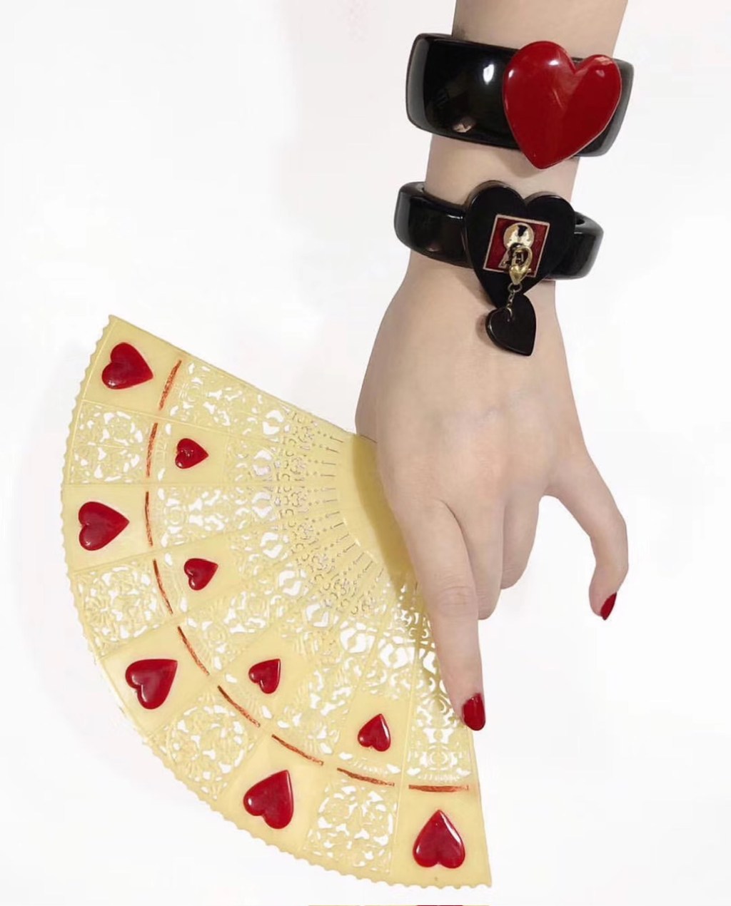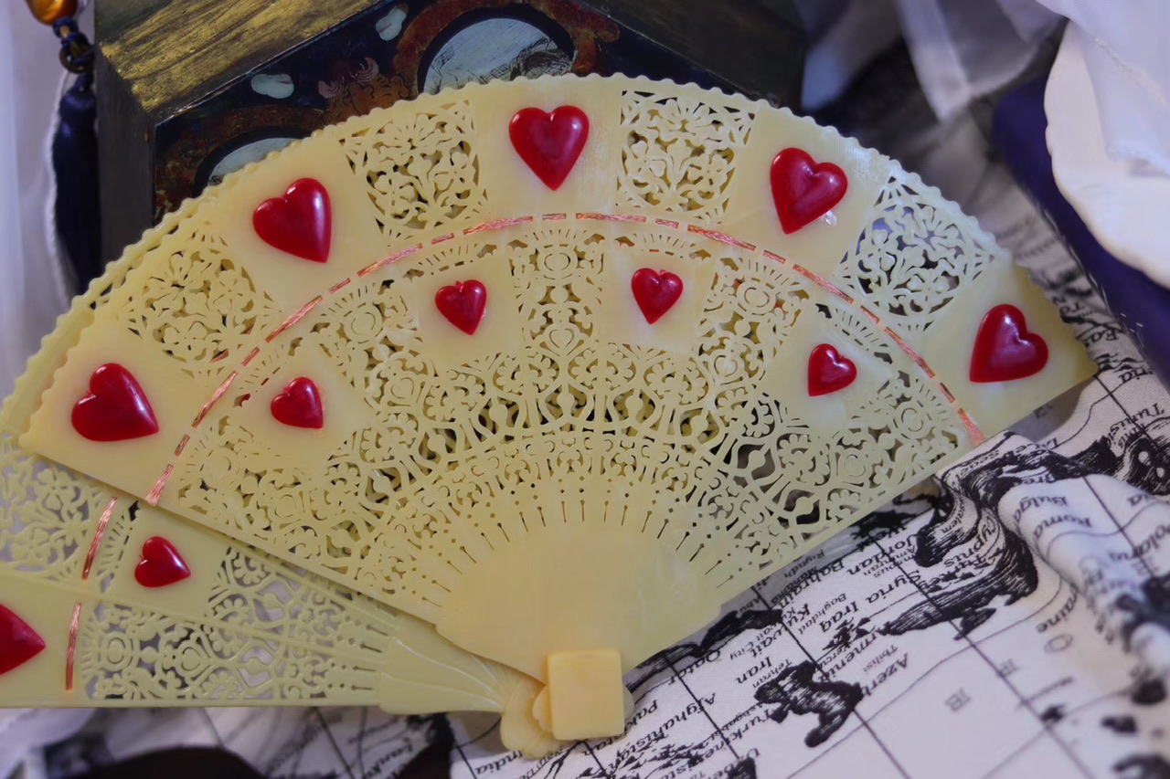 【红桃情人·红心女王】蕾丝花纹镂雕扇子;70年代香港制造;璐彩特树脂/织物;(20190306)/另有自留1件-可出-图待补
