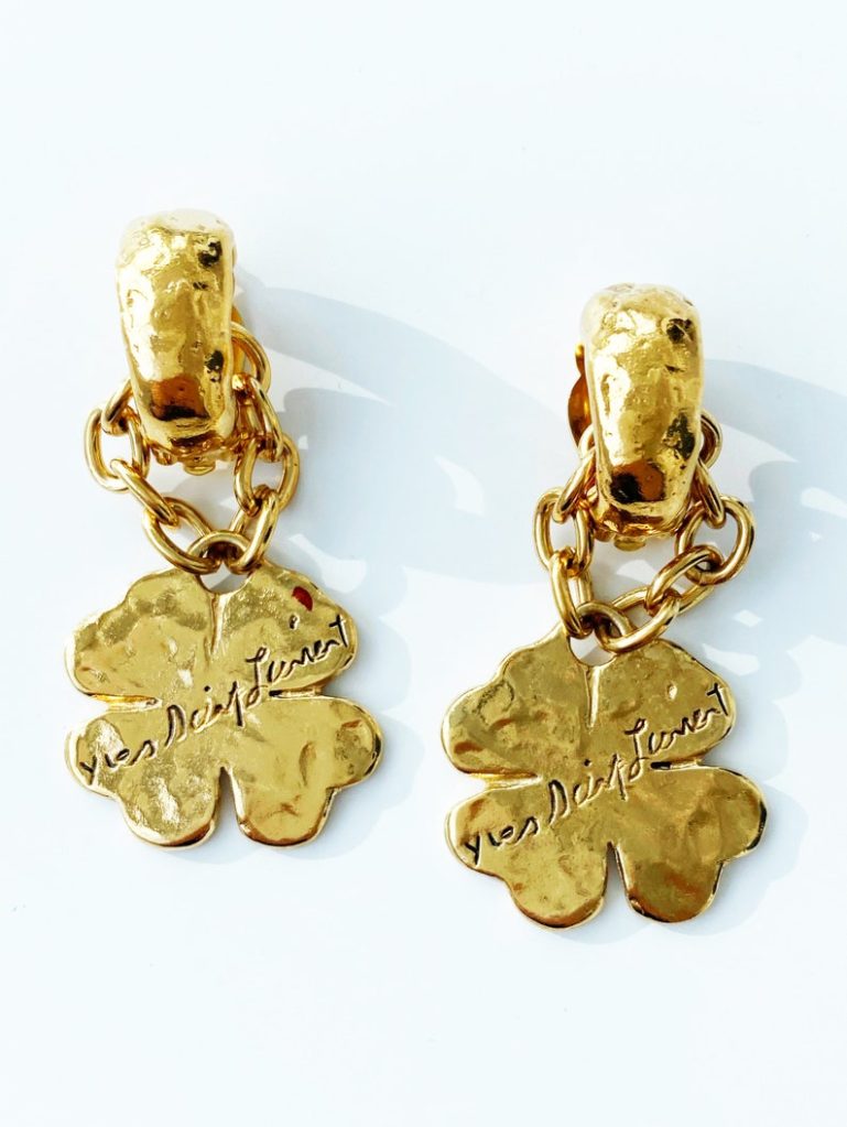 四叶草「幸运」ysl签名80年代制作镀金耳环;由RobertGoossens设计 ;5.5×2.6厘米;近乎全新(2021)