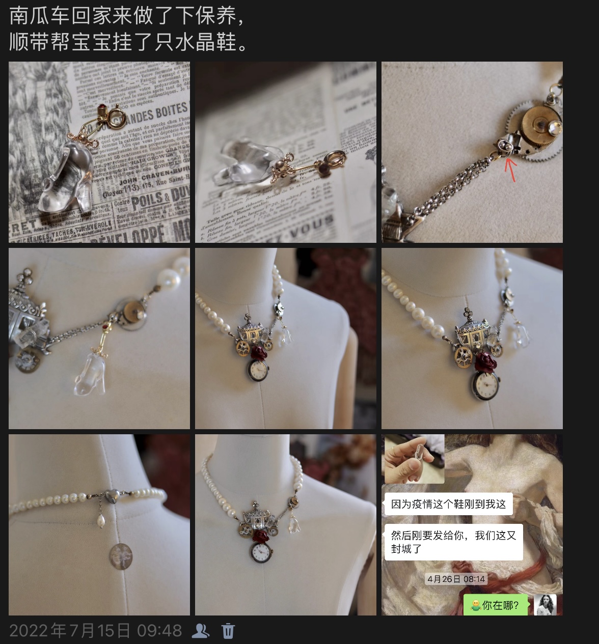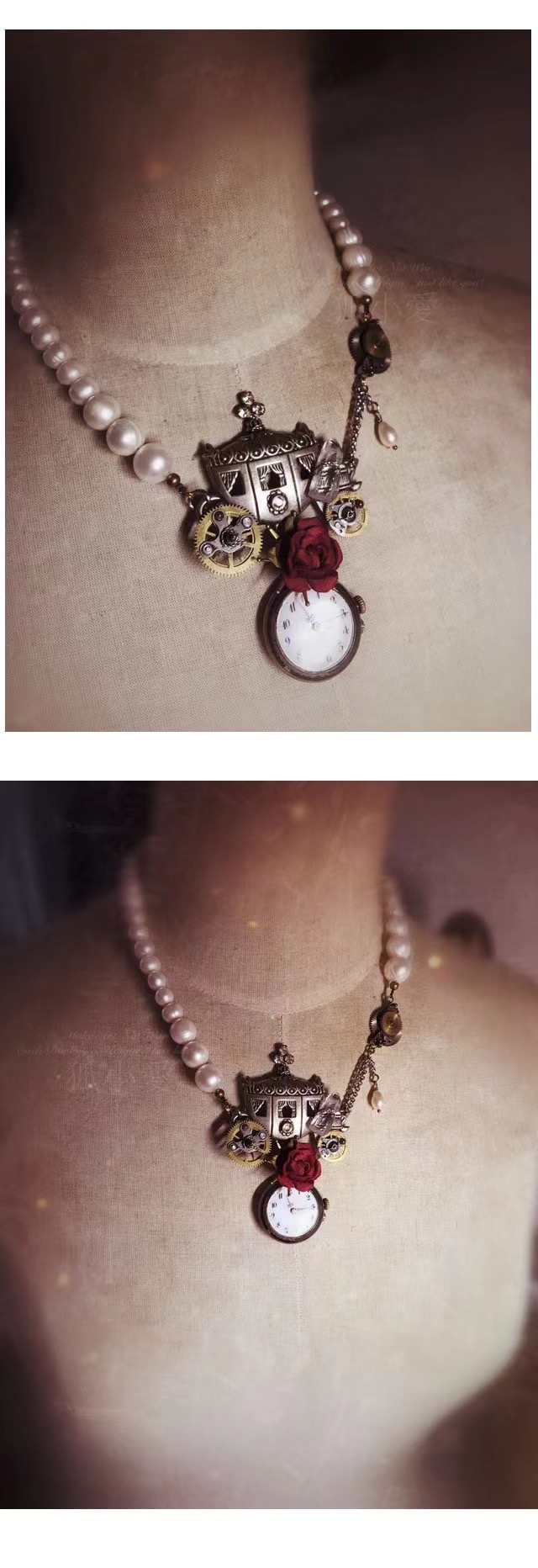 「南瓜马车」项链|维多利亚蒸汽朋克系列;灵感来自童话《灰姑娘》(Cinderella);稀有古董鎏金雕花机械表盘/镀银美制黄铜印章/古董钟表零件/纸玫瑰/淡水珍珠/白水晶原石/钛钢链等;孤独品(20160715)