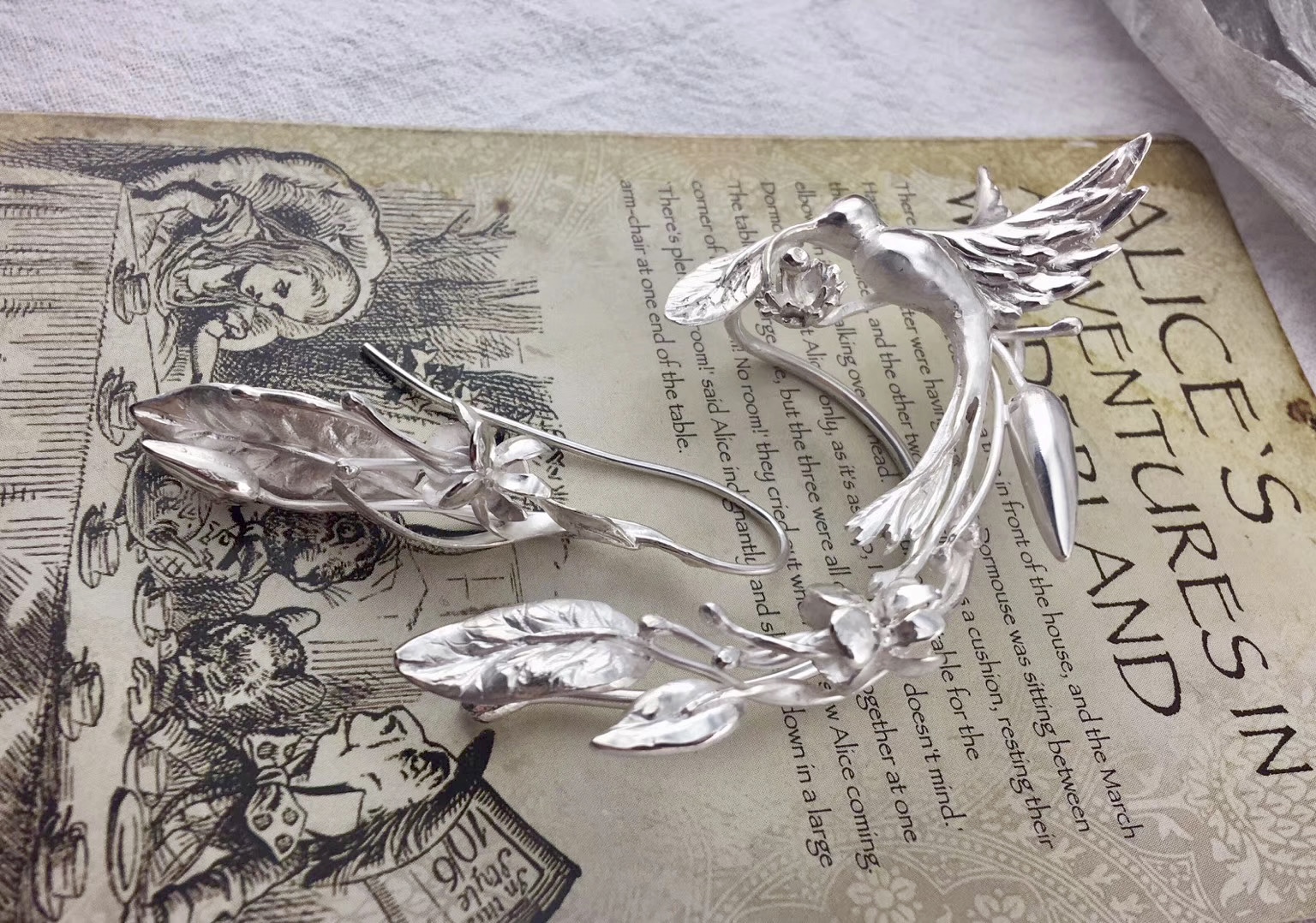 「蜂鸟Hummingbird」客制花鸟·耳夹耳环;匠心独运,美妙玲珑;西班牙TANIA M.夫妇工作室;Tania说这是她目前最喜欢的一副;925纯银 ;绝版(201804)