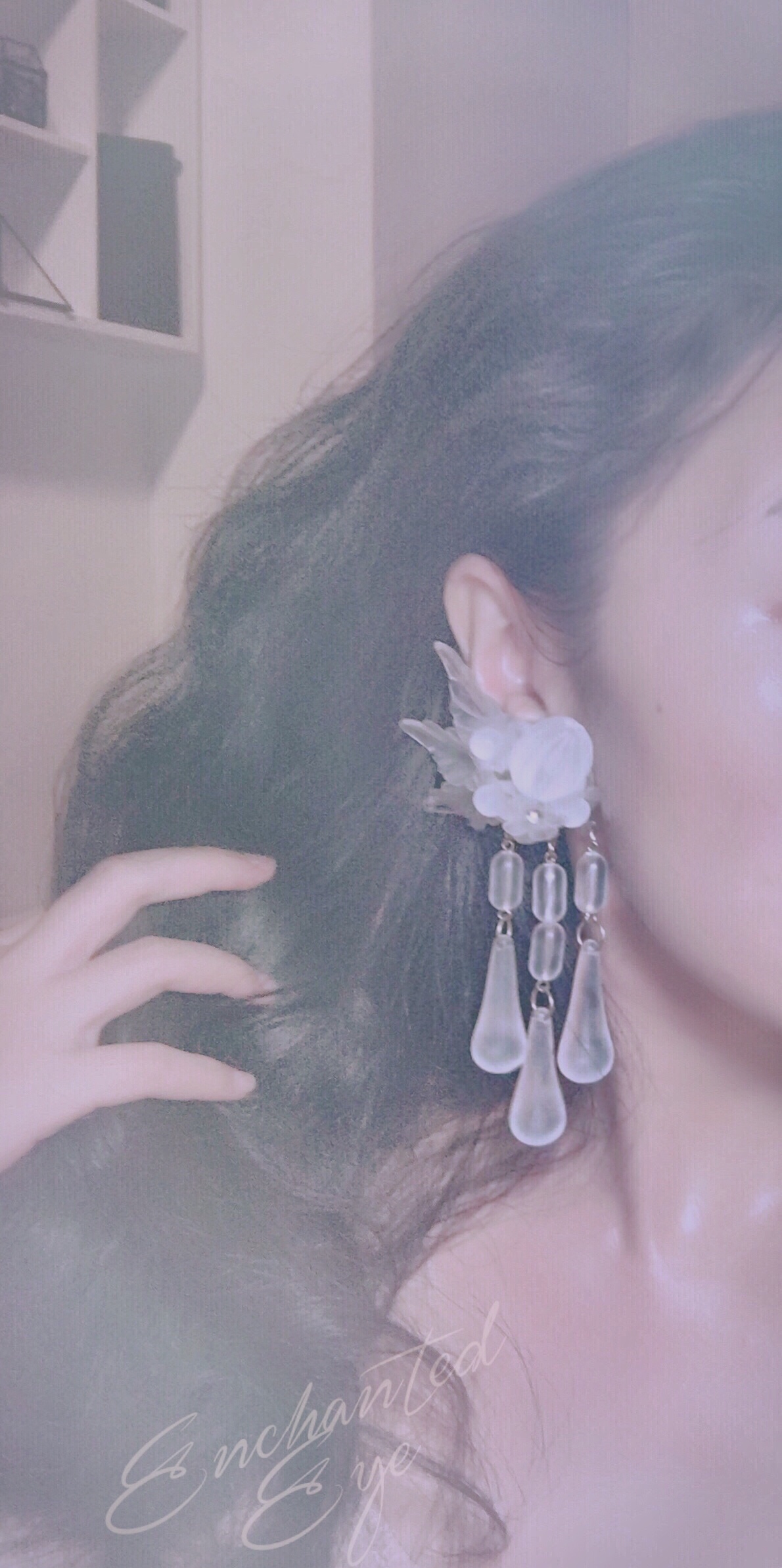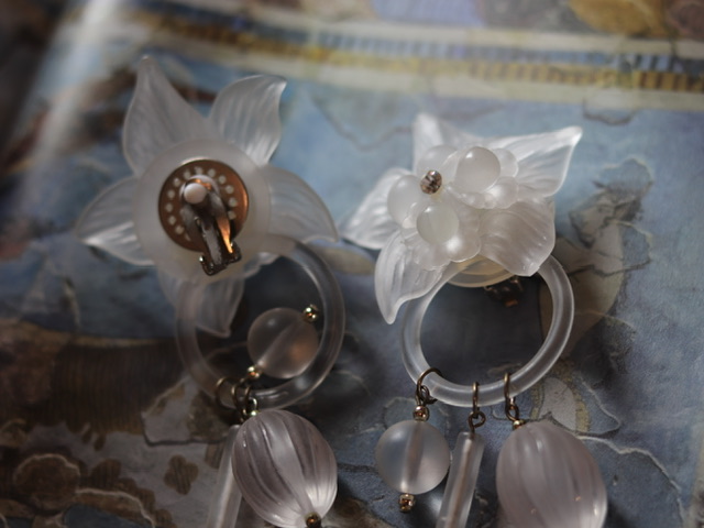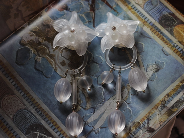 精灵系·璐彩特花枝水滴·水晶灯式大耳环;两款90年代走秀款;无标;璐彩特树脂/水钻/金属;极佳复古状态;自然主义(20190421)