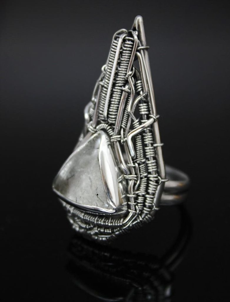 ③.「光源·LightSource」来自未来的机械、机器般的光芒·工业风线艺缠绕·戒指;Croatia克罗地亚手艺人IvonaPšak的机械美学之纯银金属系列;氧化抛光处理的纯银/电气石(碧玺)石英;纯手工缠绕+焊接固定,超牢靠;主体43x22mm(宝石16x16x16mm),戒圈4.5×1.2mm;美码8号;孤独品(20140903)#VPI