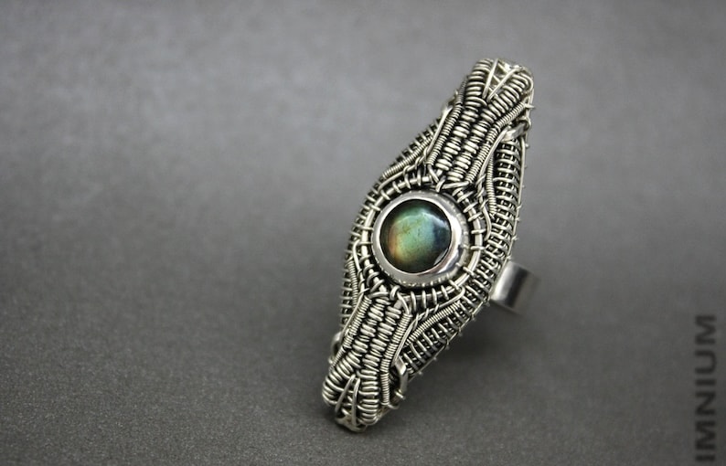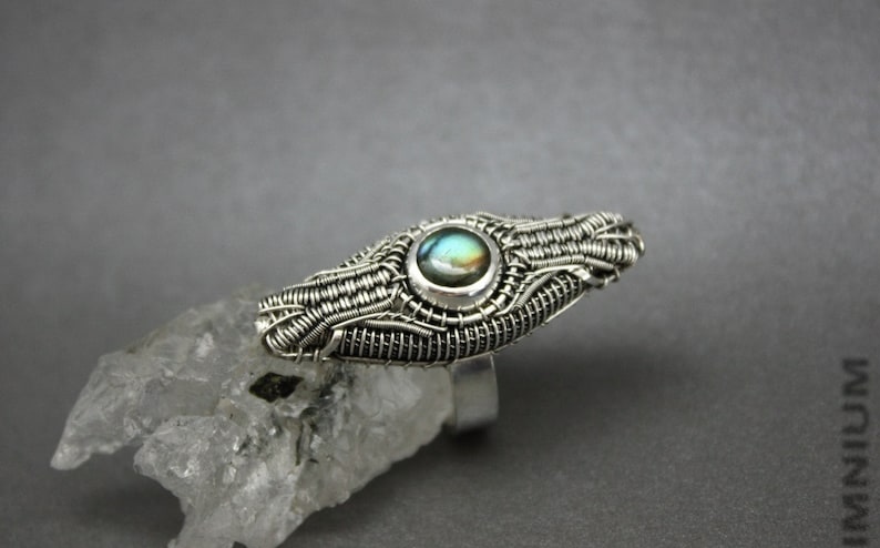 「机械彩虹」工业风线艺缠绕·戒指;Croatia克罗地亚手艺人IvonaPšak的机械美学之纯银金属系列;氧化抛光处理的纯银/labradorite拉长石(富拉玄武岩);焊接和缠绕工艺;美码8号;孤独品(20131105)/图丢失