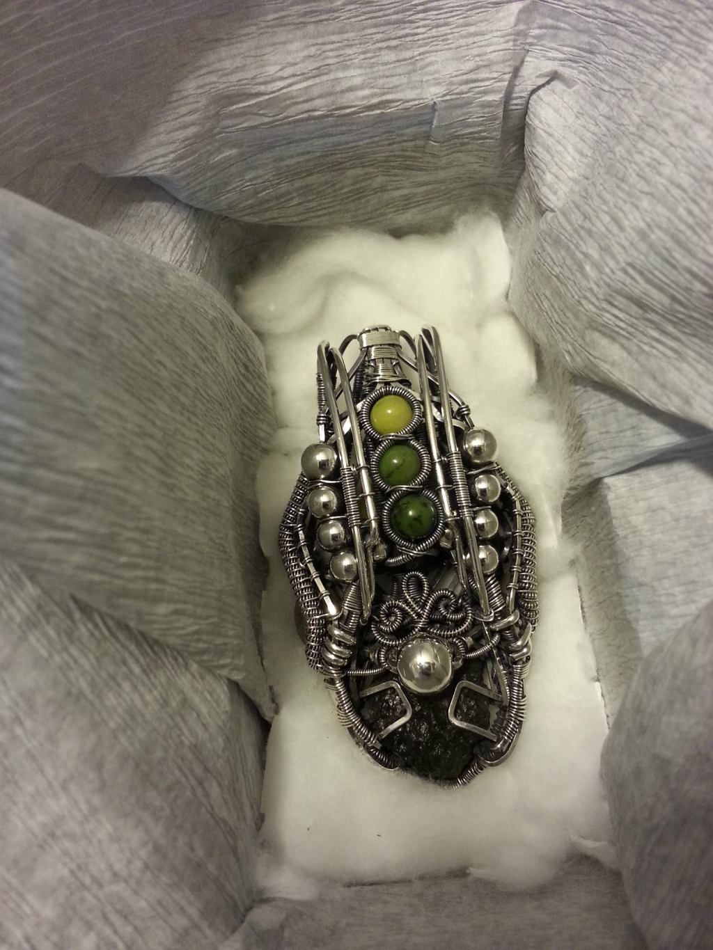 「绿陨石·星舰」工业风·线艺缠绕·项坠吊坠;Croatia克罗地亚手艺人IvonaPšak的机械美学之纯银金属系列;氧化抛光处理的纯银/绿色调天然宝石/陨石块;焊接和缠绕工艺;孤独品(20160319)/信息丢失-只留下这张实拍图