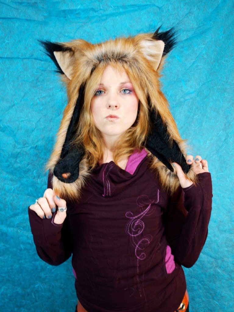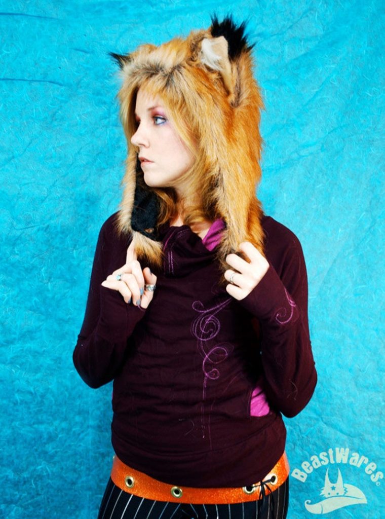 「火狐耳·毛皮防风帽」“兽器”·仿真动物耳朵·帽子;US美国加利福利亚州手艺人Phoenix;人造毛皮/天鹅绒内衬等;Cosplay;下巴下方有纽扣闭合,天鹅绒衬里中有一个秘密口袋,可存放身份证、钱财、秘密…;帽子略显宽松,适合大多数成年人的头型;绝版(20121026)/图丢失