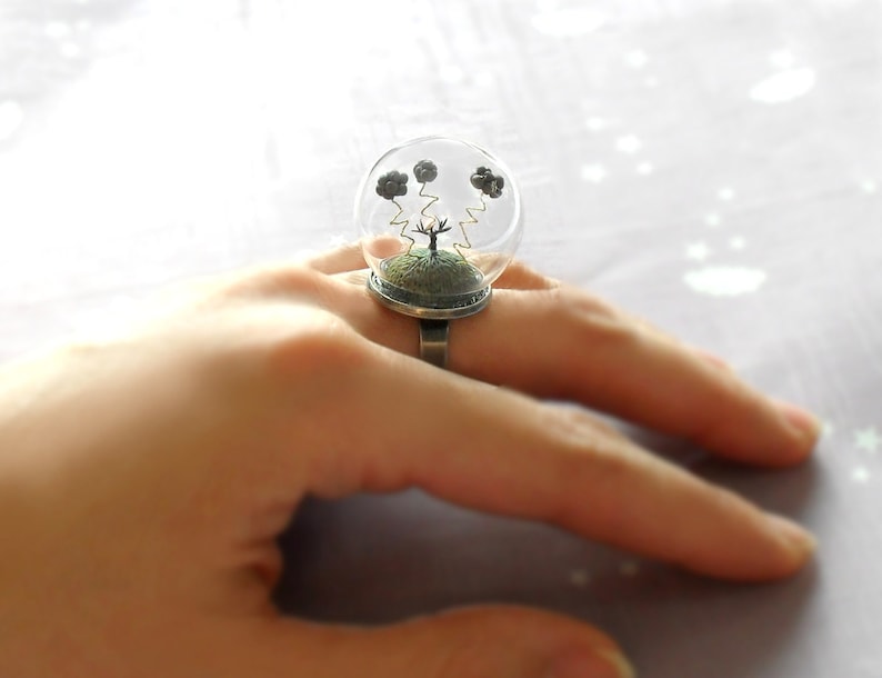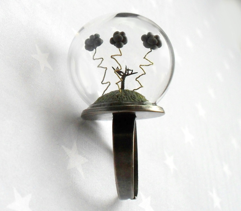 ①.「爱丽丝漫游记&闪电暴风雨」两款超迷你玻璃容器景观·戒指环;童话故事场景,一眼穿越童真世界(小时侯真的巨怕闪电,现在也怕…);定制于法国手艺人HoKiou;德国Fimo软陶/铜/玻璃等;纯手工软陶捏制,超多可爱细节;云朵仅3毫米高,枯树7毫米,玻璃圆顶约2.5厘米;手工吹制玻璃非常坚固不易碎,但也要爱护哦;绝版(20120417)/图待更