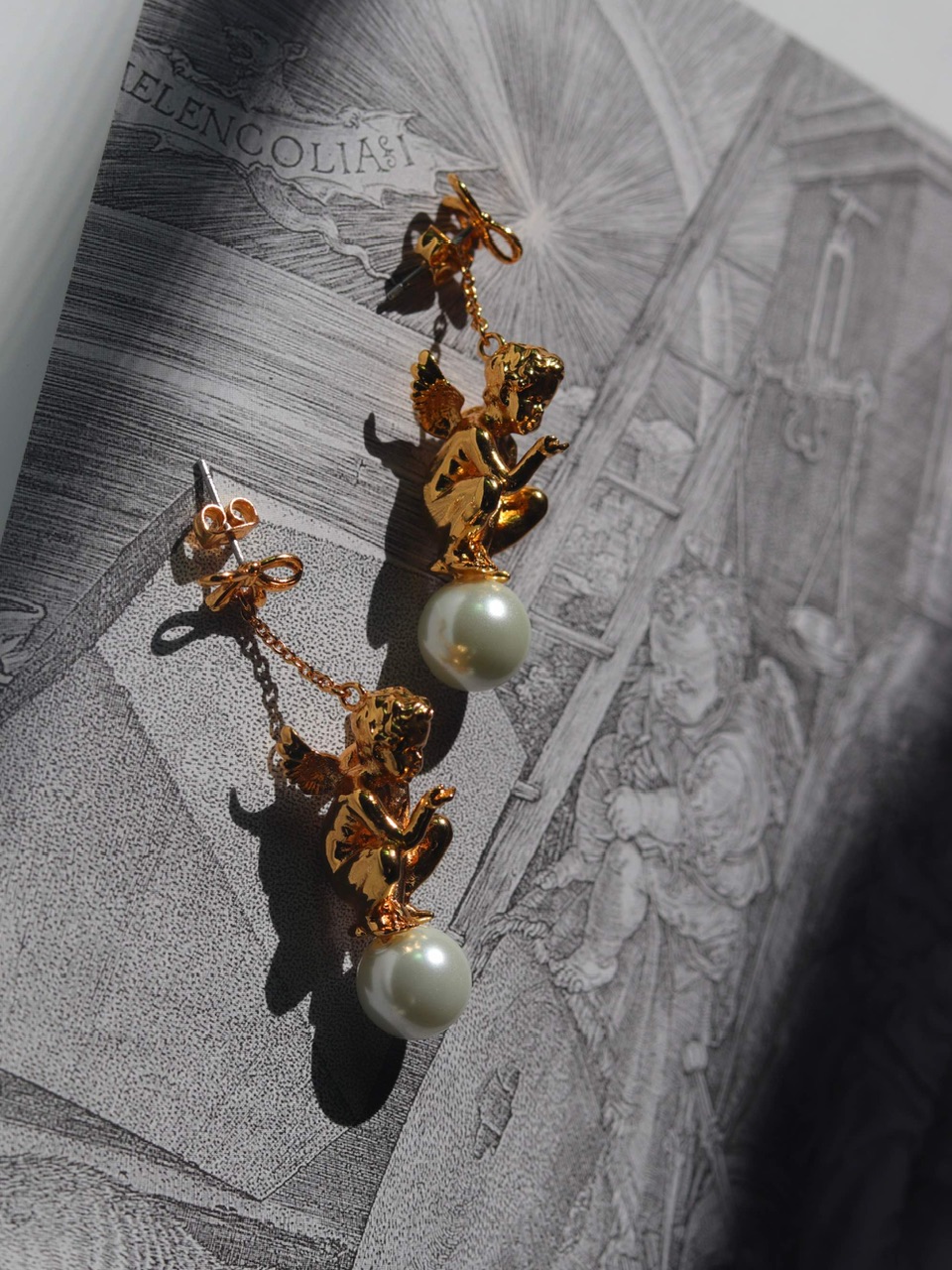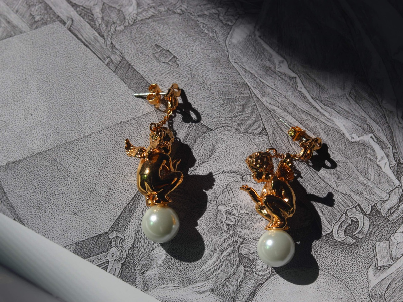 超萌小天使《丘比特飞吻》耳环;BillSkinner90年代英国制造;镀金/玻璃珍珠;库存品(20191103)