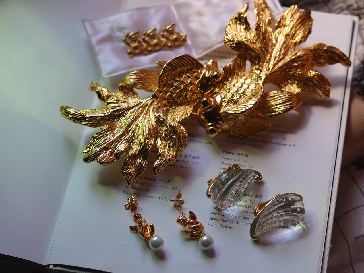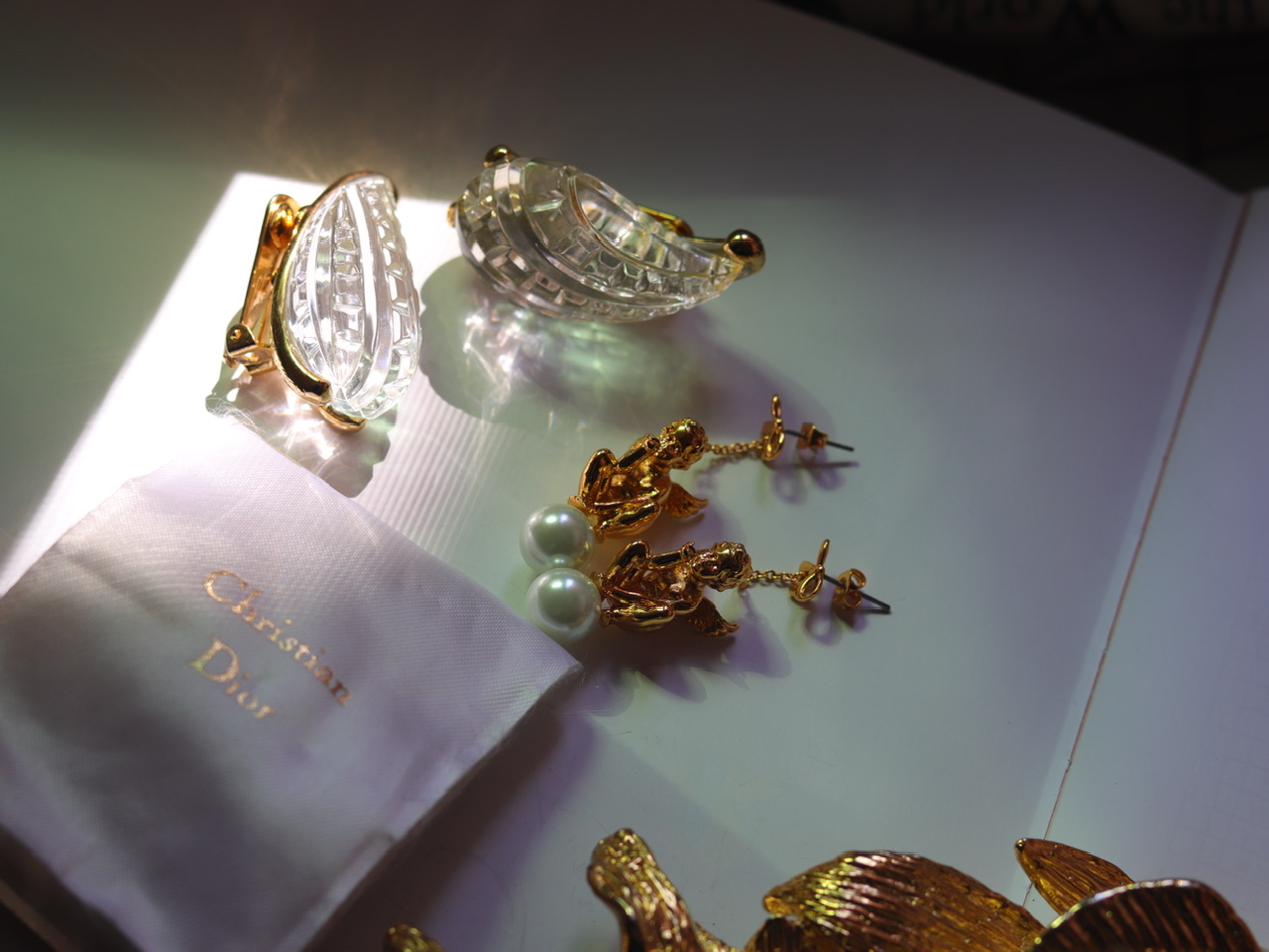「冰心玉洁」装饰艺术水滴·几何图形KJL耳环;罕见Kenneth J Lane80年代;树脂/镀金(20191105)