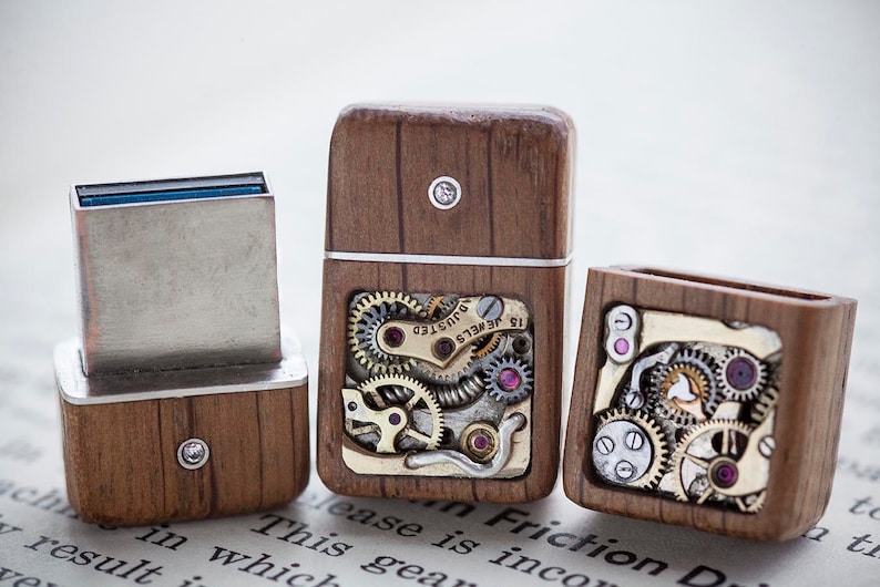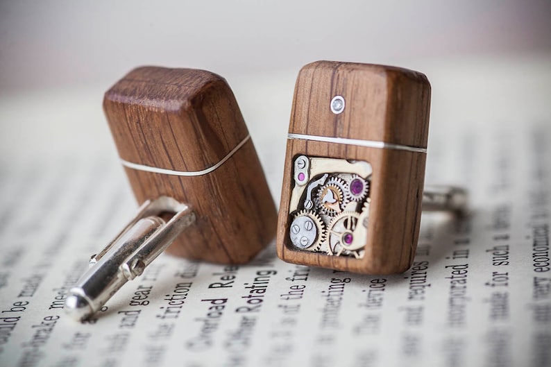 从头到尾纯手工制作。每只袖扣集成了一个高速64GB闪存驱动器,并装在一个手工雕刻的木制底盘中,底盘采用来自HMS Victory的木材制成;袖扣有大约30个独立部件,盖子上镶嵌着钻石,周围环绕着纯银圆环;传输数据时,钻石会发出蓝光;USB连接器配有纯银面板,背面为纯银袖扣配件。