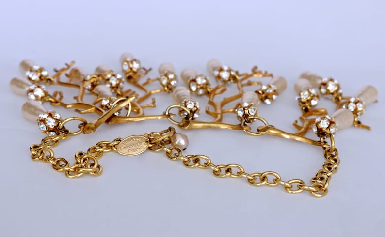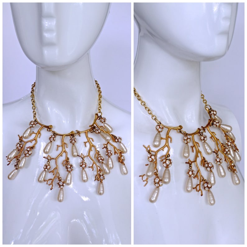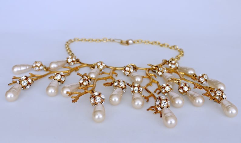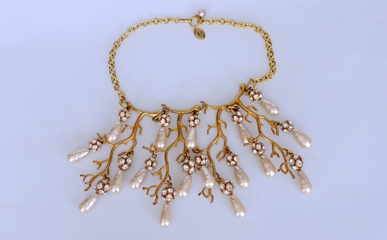 层叠树枝形珊瑚形巴洛克珍珠项链;80年代PHILIPPE FERRANDIS;树枝上点缀着巴洛克珍珠和水钻迪斯科球;主体结构为4×8.5英寸,链长约17英寸;精灵·美人鱼系,自然主义(20150226)/图丢失