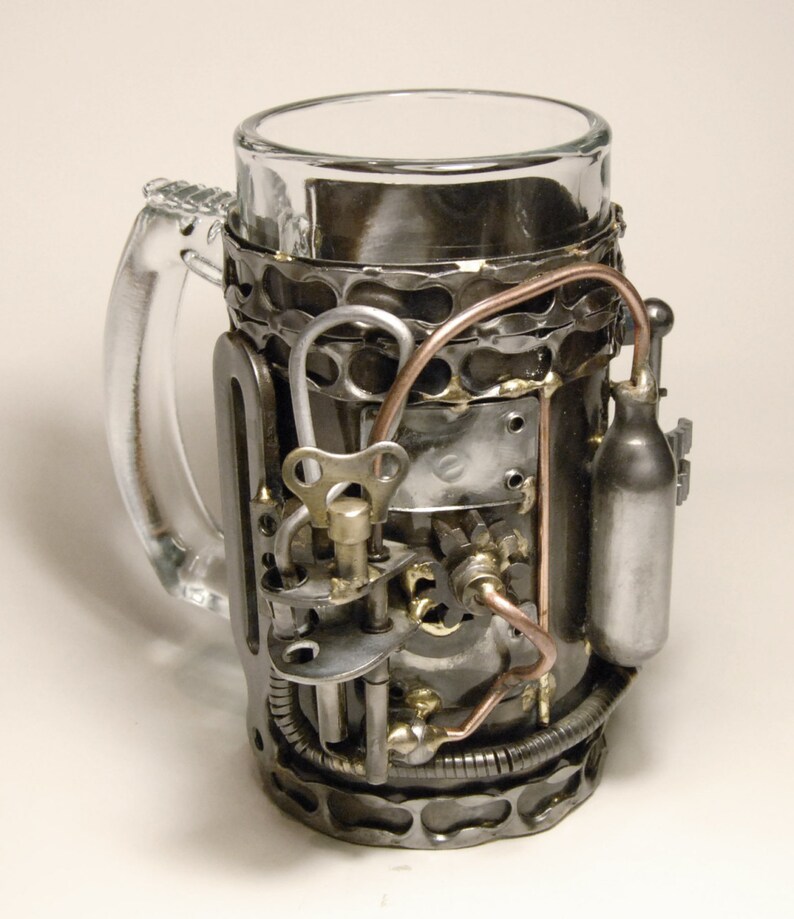 赛博朋克·啤酒杯·杯套;墨西哥手艺人WendyEsmeraldaCastillo;焊接金属件制成;包括一个400毫升的可被更换的玻璃杯;孤独品(20140903)/图丢失