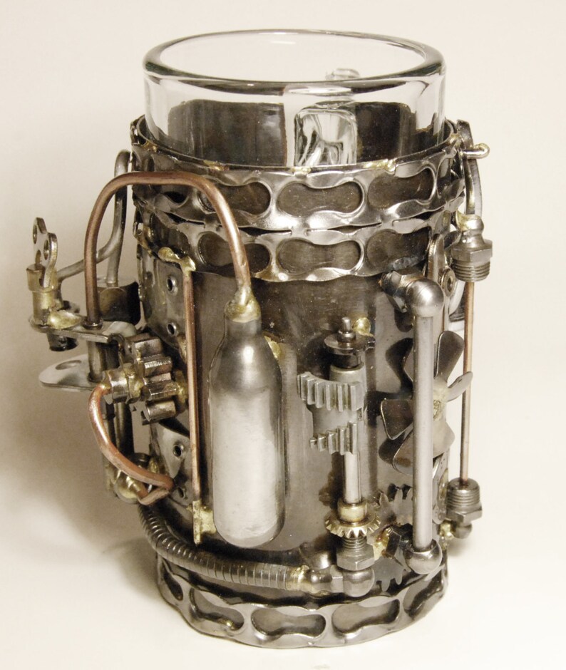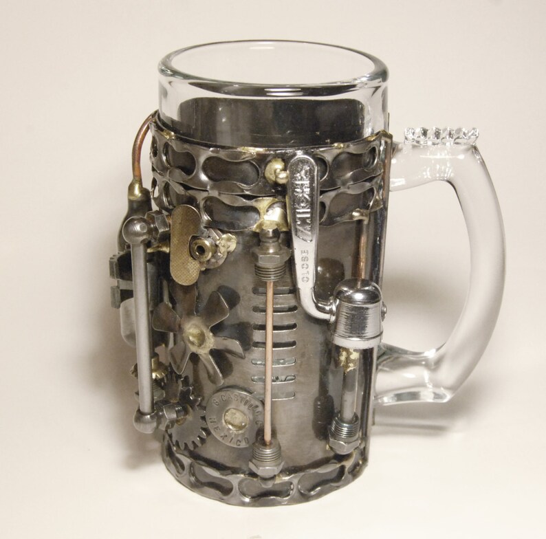 ③.赛博朋克·啤酒杯·杯套;墨西哥手艺人WendyEsmeraldaCastillo;焊接金属件制成;包括一个400毫升的可被更换的玻璃杯;孤独品(20140903)